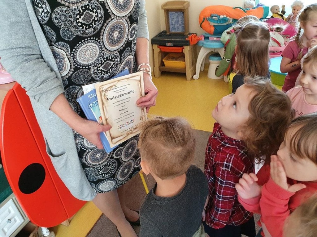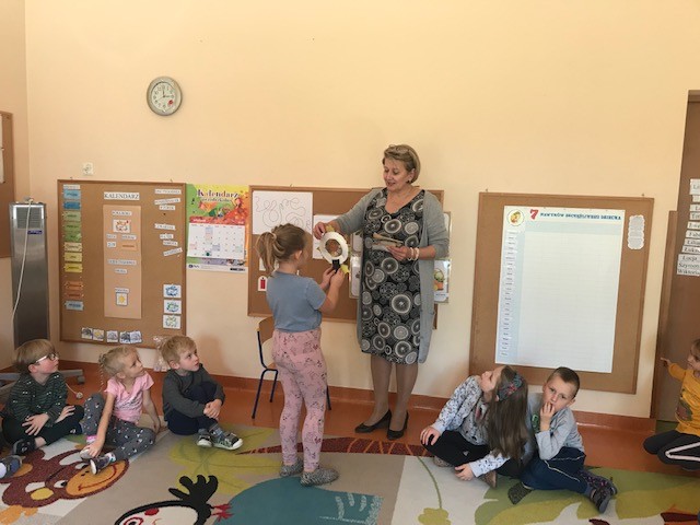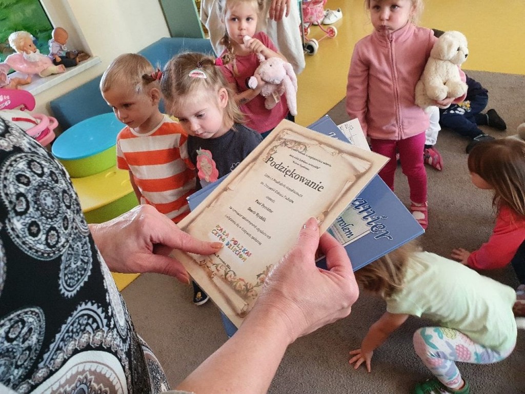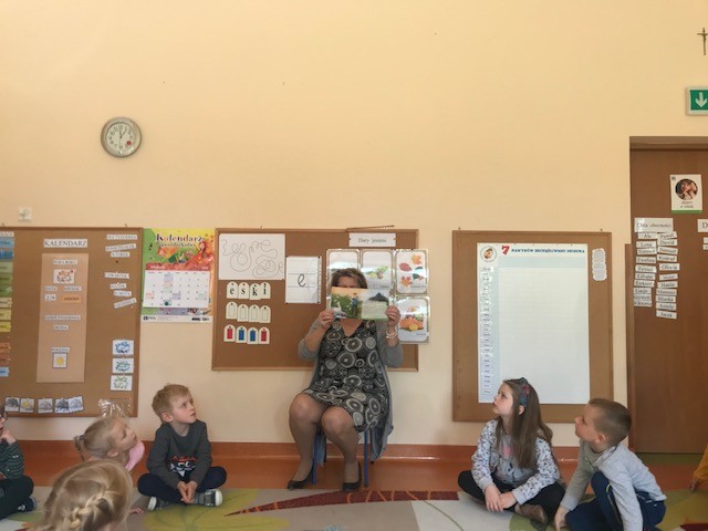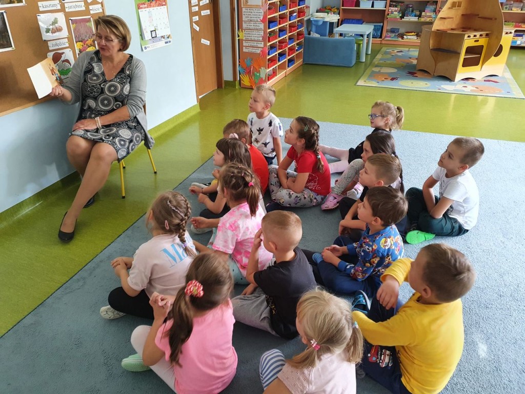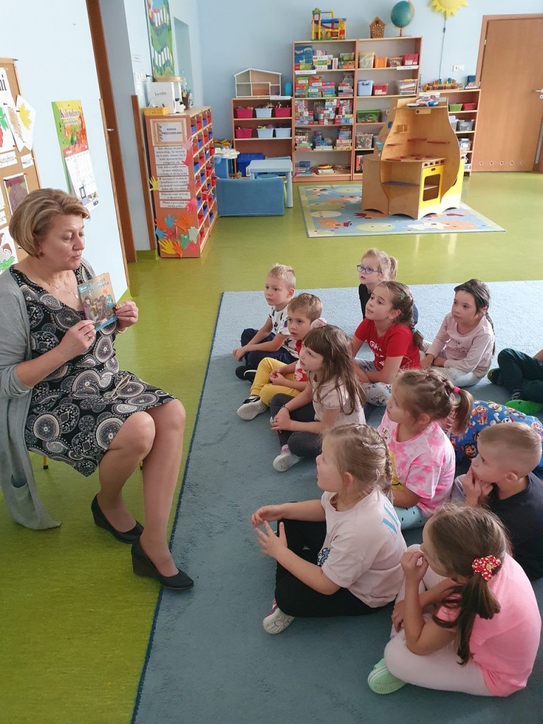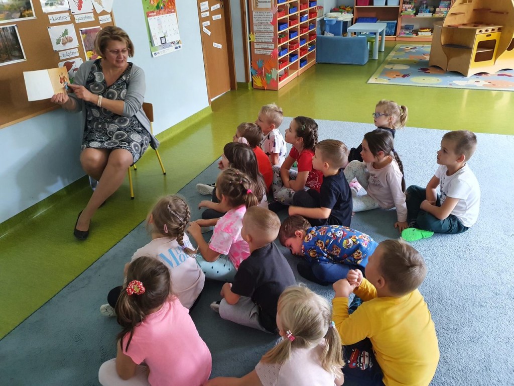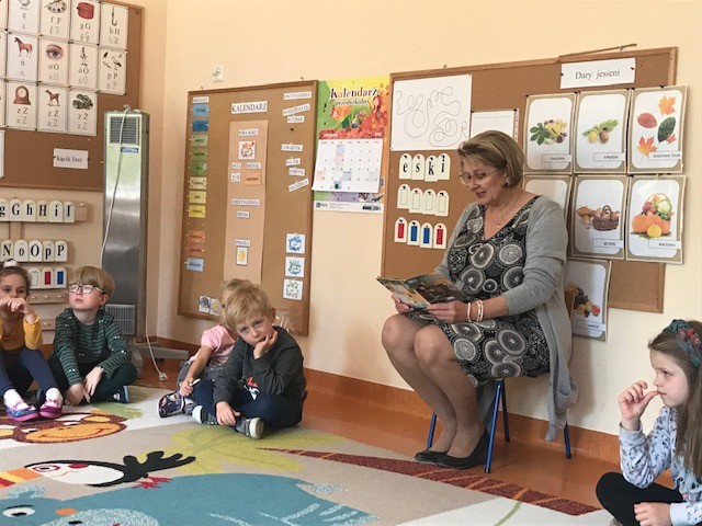 W ramach społecznej kompanii „Cała Polska czyta dzieciom” w dniu 29 września obchodziliśmy w naszym przedszkolu Ogólnopolski Dzień Głośnego Czytania. Z tej okazji zaprosiliśmy Panią Dyrektor Beatę Rychlik do czytania dzieciom bajek we wszystkich grupach wiekowych. Dzieci młodsze wysłuchały książki pt. Uczę się dobrych manier razem z Karolem, natomiast starszaki „Szewczyka Dratewkę” autorstwa Janiny Porazińskiej w związku z obchodami 133 rocznicy urodzin pisarki. W podziękowaniu za rozwijanie zainteresowań czytelniczych i włączenie się w kampanię wręczyliśmy Pani dyrektor dyplom oraz jesienny upominek od dzieci Dziękujemy również rodzicom, którzy tego dnia włączyli się w akcję czytając swym dzieciom przed snem ulubione bajki.
