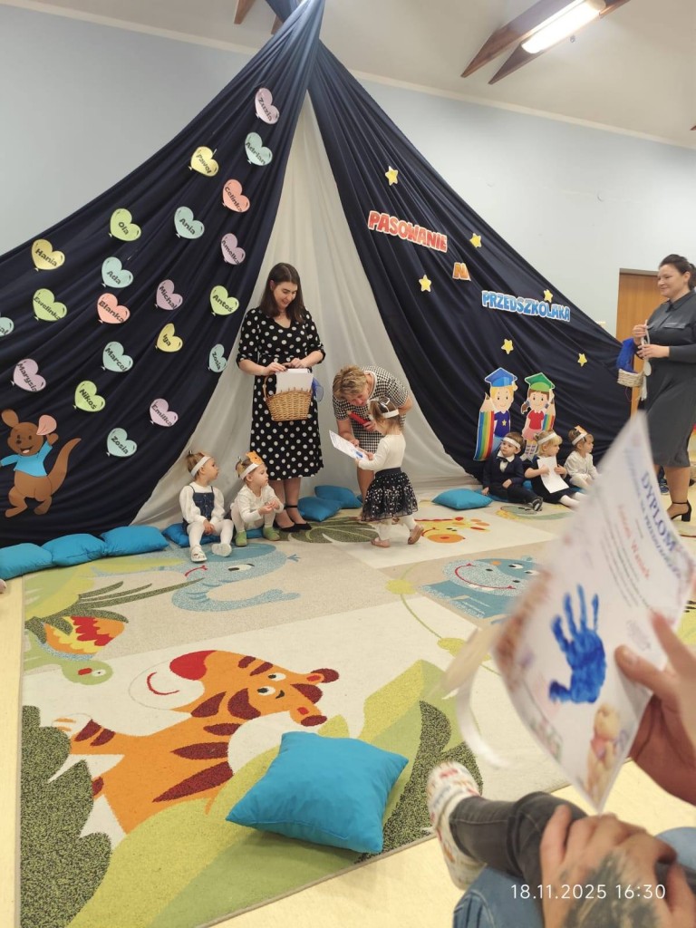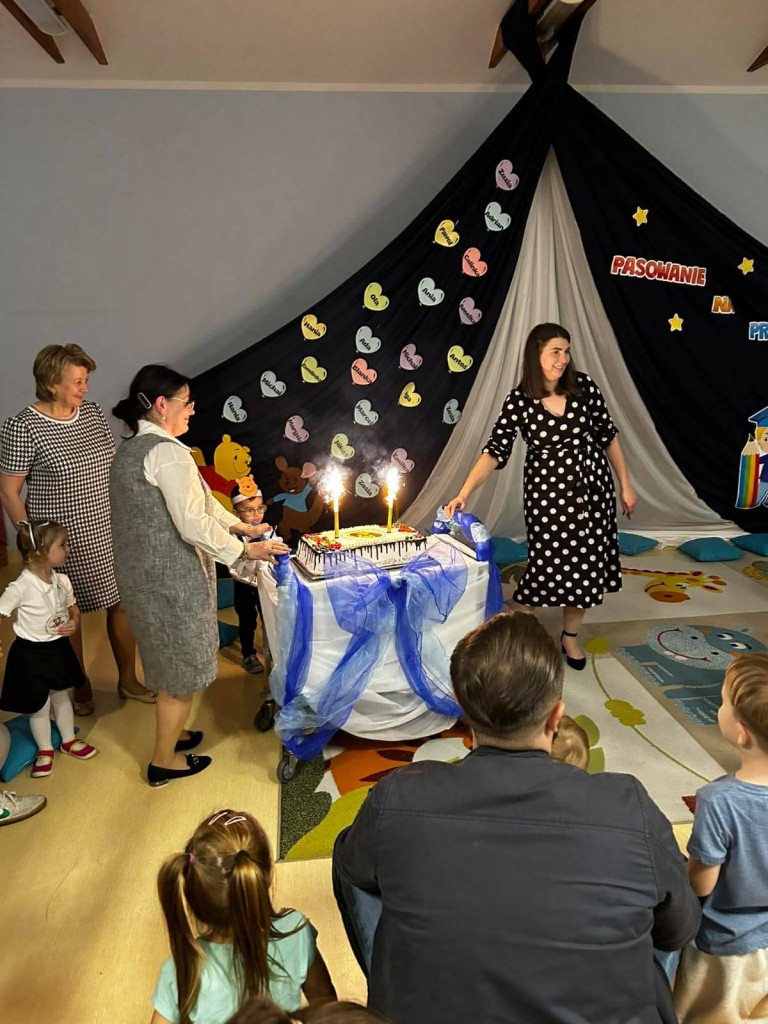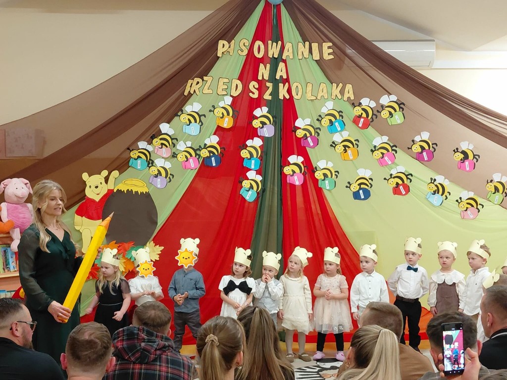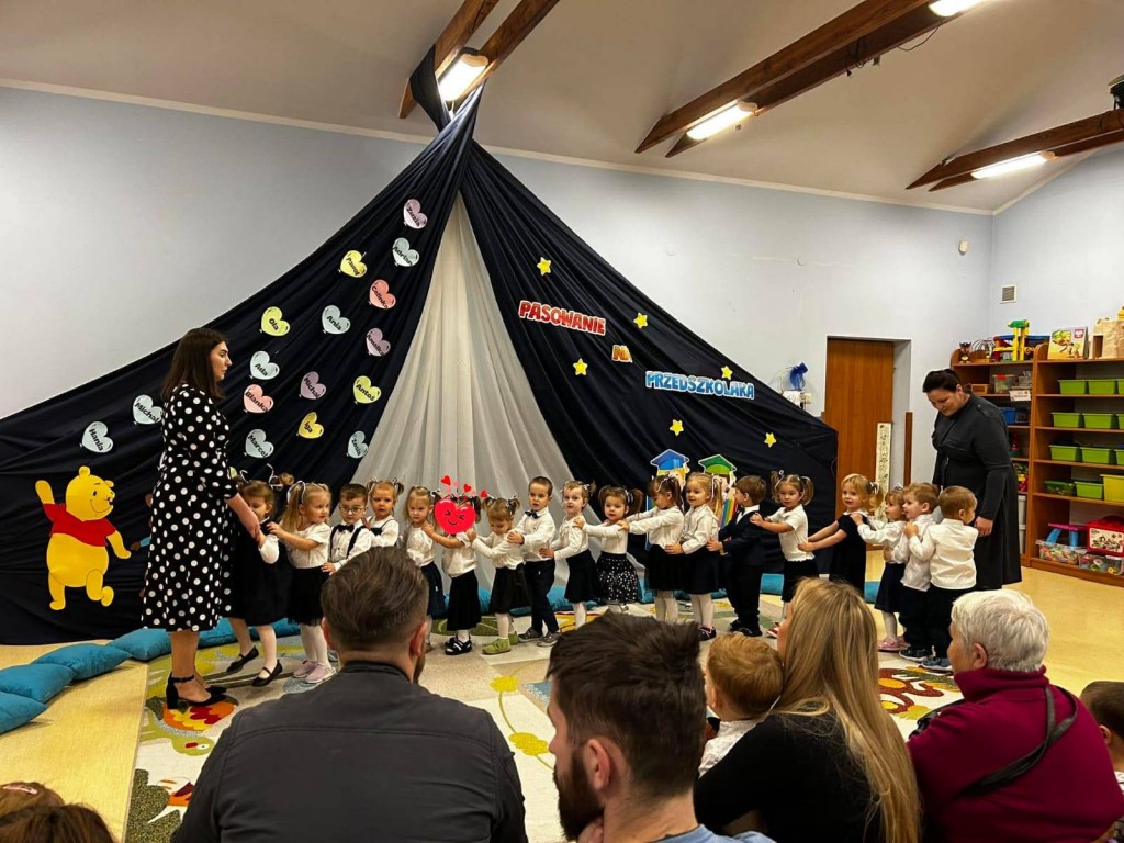 18 i 19 listopada odbyły się uroczystości Pasowania na Przedszkolaka w I i II grupie 3 latków. Nasze dzielne maluchy odważnie wykonały wszystkie zadania jakie otrzymały od Kubusia Puchatka - aby mógł ich przyjąć do grona swoich przyjaciół. Uroczystego pasowania na Kubusiowego Przedszkolaka dokonała Pani Dyrektor Beata Rychlik. Zwieńczeniem uroczystości był pyszny tort, który wykonały Panie kucharki.