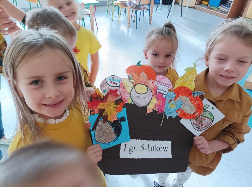 Kolejny Dzień Dobrego Słowa za nami... Tym razem bogactwo dobrych słów wypływało z bogactwa darów jesieni. Hasłem przewodnim były słowa: "Niech ta złota jesień same dobre słowa niesie." I przyniosła.... Jesienne kosze zapełniły się różnymi darami jesieni a na każdym z nich same dobre słowa. Jak to dobrze, że możemy liczyć na naszych przedszkolaków i ich rodziców - bo to właśnie oni przygotowali w domu te niezwykłe dary jesieni. Serce rośnie kiedy wśród różnych słów typu: proszę, dziekuję, przepraszam, życzę dobrego dnia znajdujemy też i takie: dasz radę, jesteś dla nas ważny. Cieszy nas to, że możemy współpracowac z rodzicami, którzy mają świadomość mocy wypowiadanych słów.
