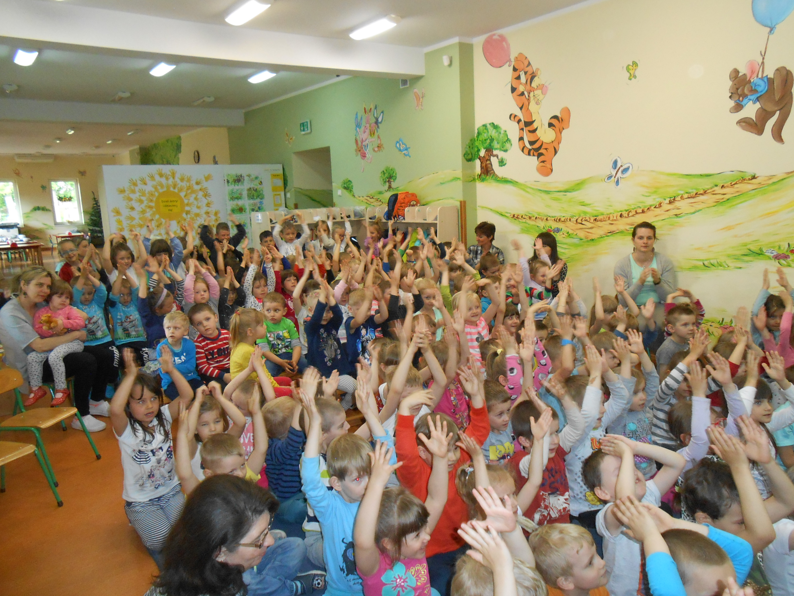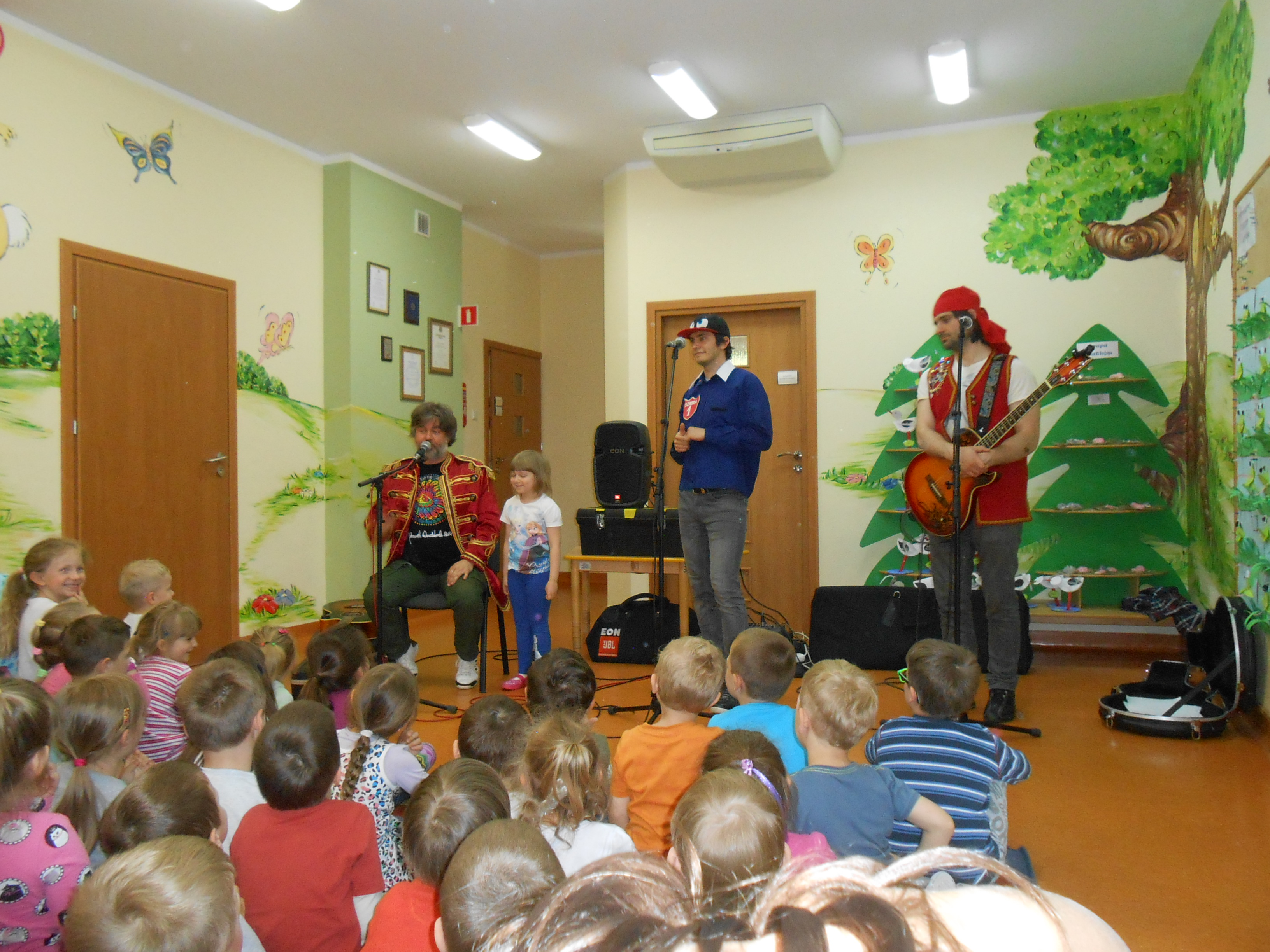 Dnia 17 maja gościliśmy w naszym przedszkolu zespół „Orkiestra Dni Naszych”. Tematem spotkania buło: "Po co nam zdrowie ?". Muzycy zaprezentowali dzieciom utwory nawiązujące do zdrowego trybu życia oraz kultury osobistej. W porywających piosenkach i śmiesznych skeczach artyści przypomnieli dzieciom o konieczności systematycznego mycia się, korzyściach płynących ze zdrowego odżywiania, wyrabianiu nawyku picia wody oraz aktywnym spędzaniu wolnego czasu na świeżym powietrzu. Dzięki humorowi jaki dopisywał muzykom koncert okazał się wspaniałą zabawą. Czekamy na kolejne spotkanie z Piratem, Kubą oraz Jurkiem Ogórkiem !!!