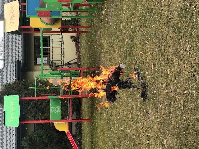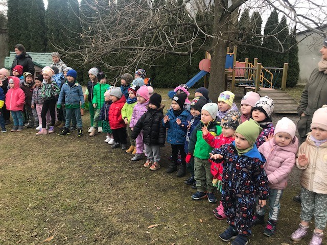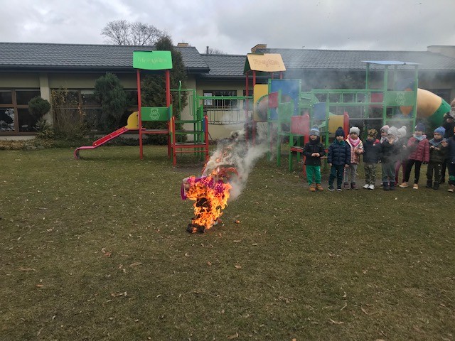 Pierwszy dzień wiosny w naszym przedszkolu powitaliśmy na zielono. Wesołym, barwnym korowodem przeszliśmy z Marznną na duży plac zabaw. Aby tradycji stało się zadość przedszkolaki pożegnały zimę recytacją wierszyka, a śpiewem powitały wiosnę. Zwieńczeniem naszej uroczystości było spalenie Marzanny i pożegnanie jej na kolejny rok.