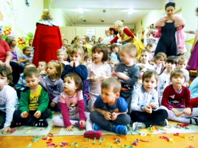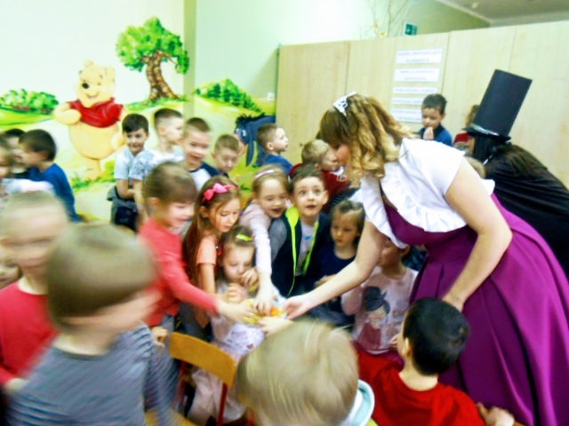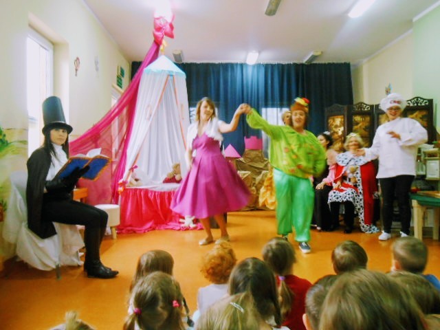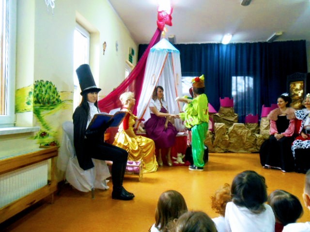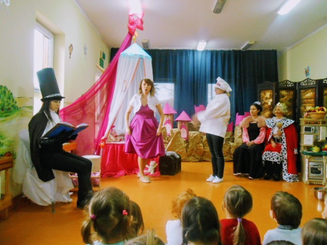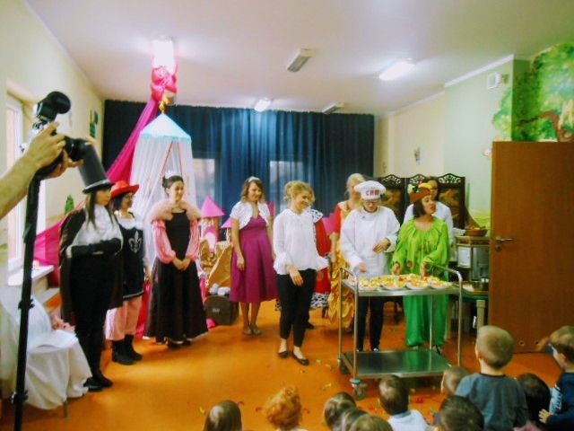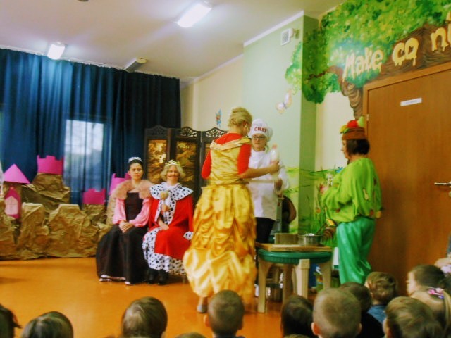 Tradycją w naszym przedszkolu stało się to, że raz w roku nauczyciele przygotowują przedstawienie dla dzieci. Wykorzystując swoje talenty aktorskie i swoiste poczucie humoru 16 marca wychowawczynie zaprezentowały przedstawienie pt.: „Witaminki dla księżniczki Marcelinki”. W inscenizacji główna bohaterka Księżniczka Marcelinka, rozpieszczana przez rodziców, wybierała do jedzenia tylko słodycze, przez co była coraz słabsza i coraz bardziej chora. Lekarze nie mogli jej pomóc. Na ratunek przyszedł dopiero Książę Witaminek, który uświadomił wszystkim co tak naprawdę jest zdrowe i ważne w codziennej diecie. Po dawce owoców i warzyw bogatych w witaminy, księżniczka wróciła do zdrowia.