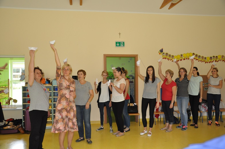 W dniu 11 i 12 września nauczyciele Kubusiowego przedszkola z ulicy Kolejowej i Łomaskiej uczestniczyli w warsztacie metodycznym pod hasłem „Przyśpiewuję i tańcuję". Został on zorganizowany przez Niepubliczną Placówkę Doskonalenia Nauczycieli w Koszarawie Bystrej „Muzyka w Kolorach Tęczy" Karoliny Barańskiej na terenie naszego przedszkola. Zajęcia stworzyły uczestnikom warunki do nabycia umiejętności organizowania zajęć muzyczno-tanecznych w przedszkolu opierających się na folklorze polskim i rozwijających słuch, umiejętność śpiewu oraz ruchu do muzyki.