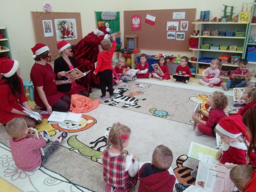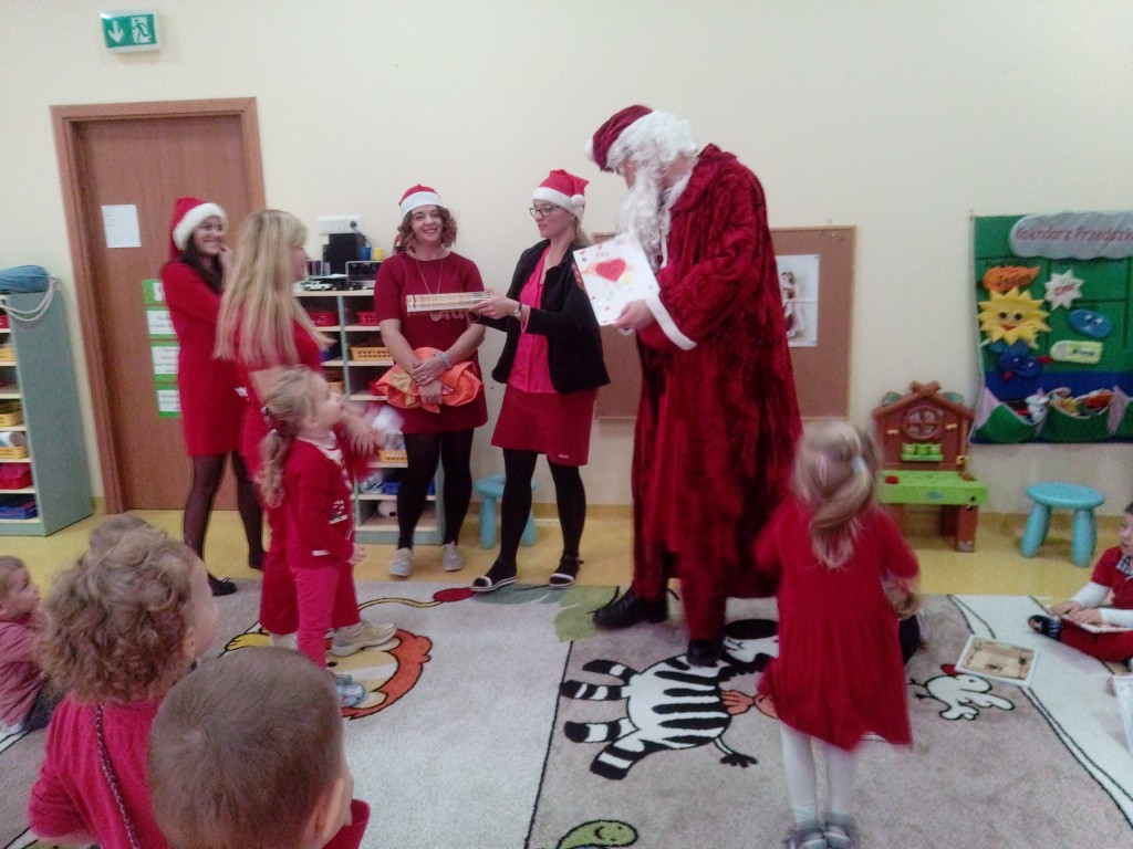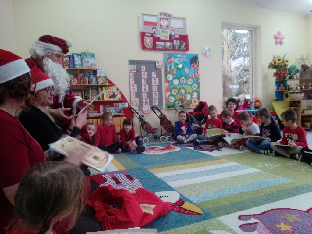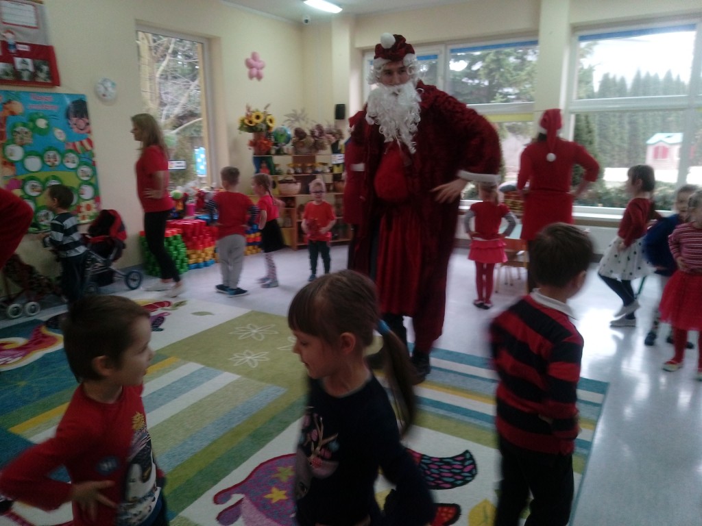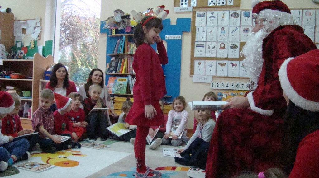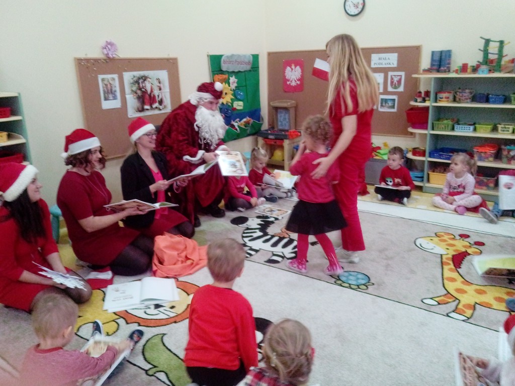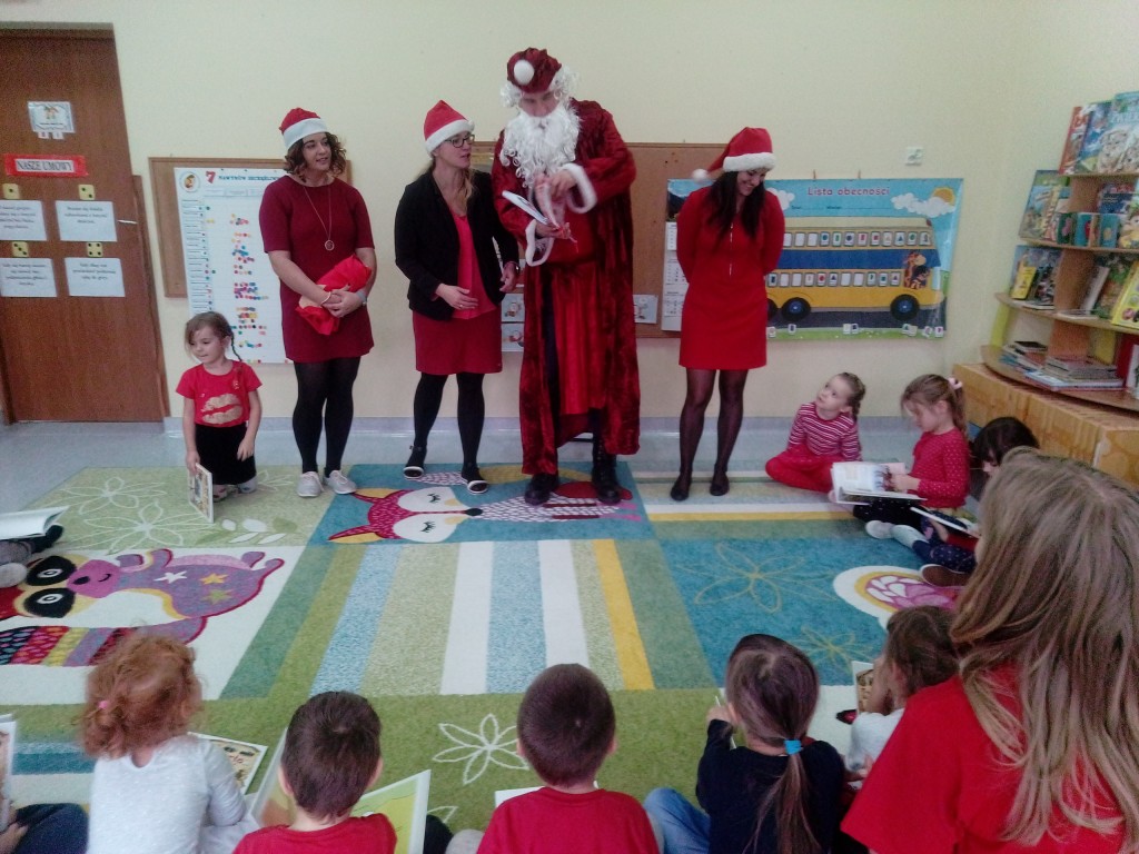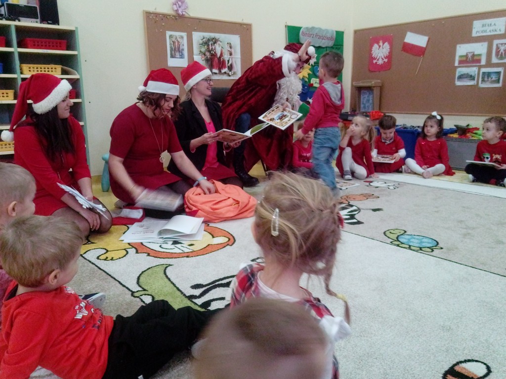 6 grudnia jak co roku w naszym przedszkolu panowała wyjątkowa atmosfera. Wszystkie przedszkolaki czekały na przybycie długo oczekiwanego gościa. Kiedy za drzwiami rozległ się głos dzwonka, dzieci już wiedziały, że to św. Mikołaj przybył do nich z workiem prezentów. Na jego wizytę cierpliwie czekały cały rok. Wcześniej nauczyły się piosenek i wierszy, które specjalnie dla Niego przygotowały. Każda grupa zaprezentowała swoje umiejętności wokalne i recytatorskie. Spotkanie z Mikołajem minęło radosnej atmosferze. W tym roku otrzymał on od dzieci szczególny prezent, a mianowicie były to serduszka z dobrymi uczynkami, o które Mikołaj prosił dzieci w liście skierowanym do nich. Wpisując się w obchody Dni Dobrego Słowa oraz tradycję ubierania choinki, Mikołaj poprosił dzieci, aby zawiesiły te serduszka na choince w holu przedszkola, tak by mógł zobaczyć , jakimi dobrymi dziećmi są nasze przedszkolaki. Na zakończenie Mikołaj obdarował wszystkich prezentami. Miłym akcentem spotkania były wspólne zdjęcia z naszym gościem.