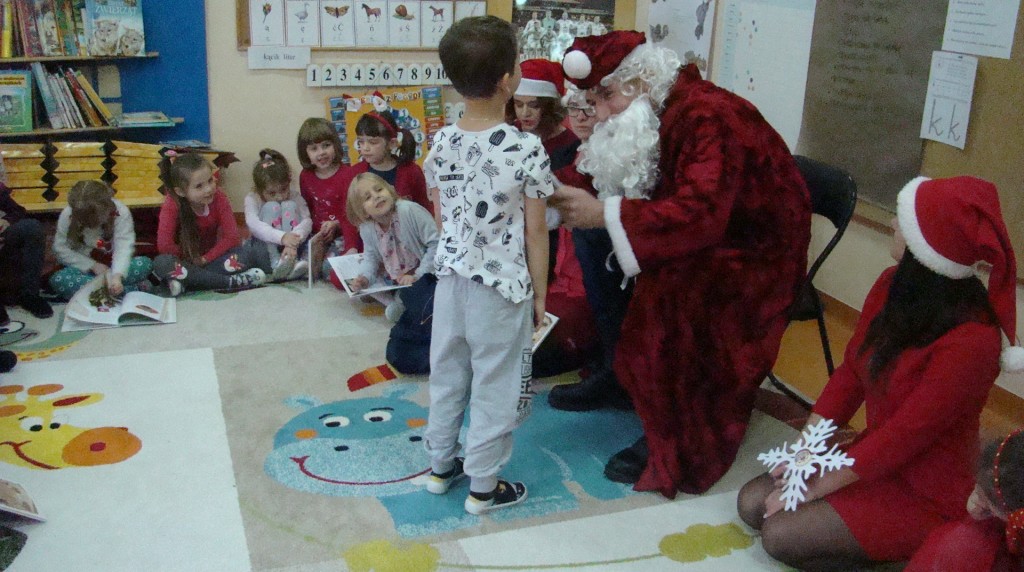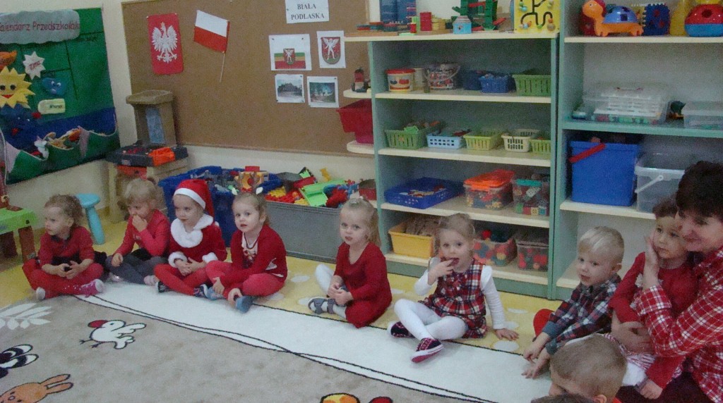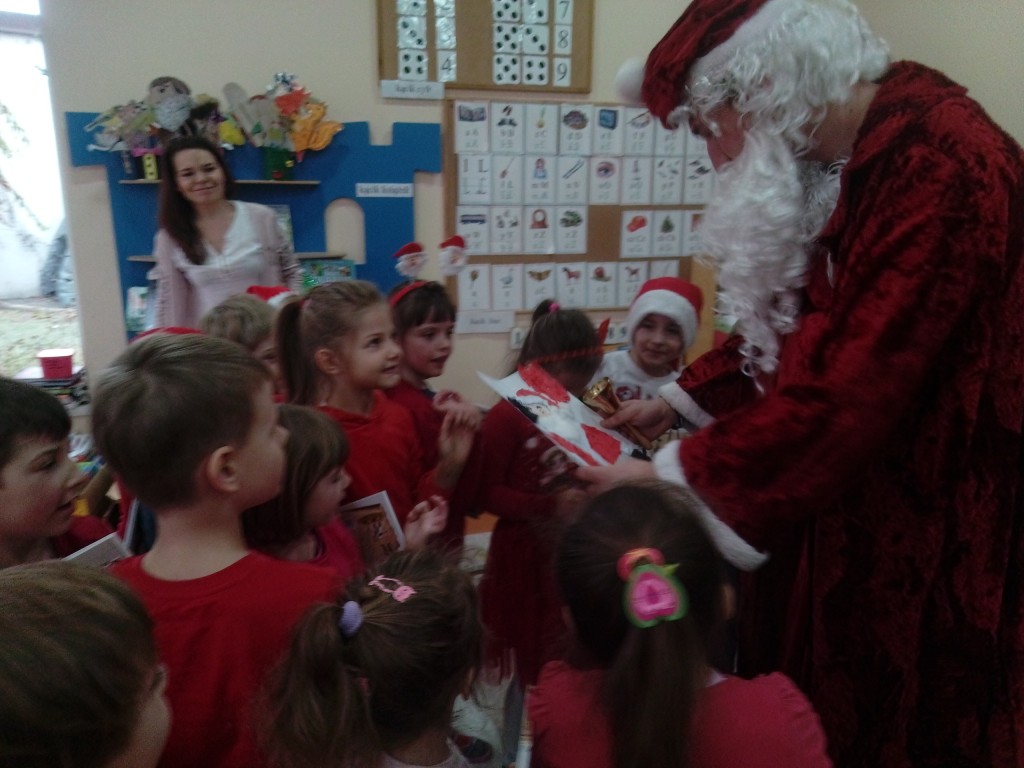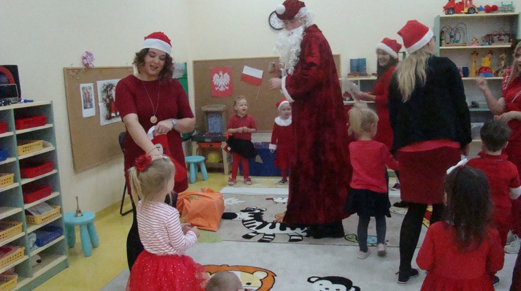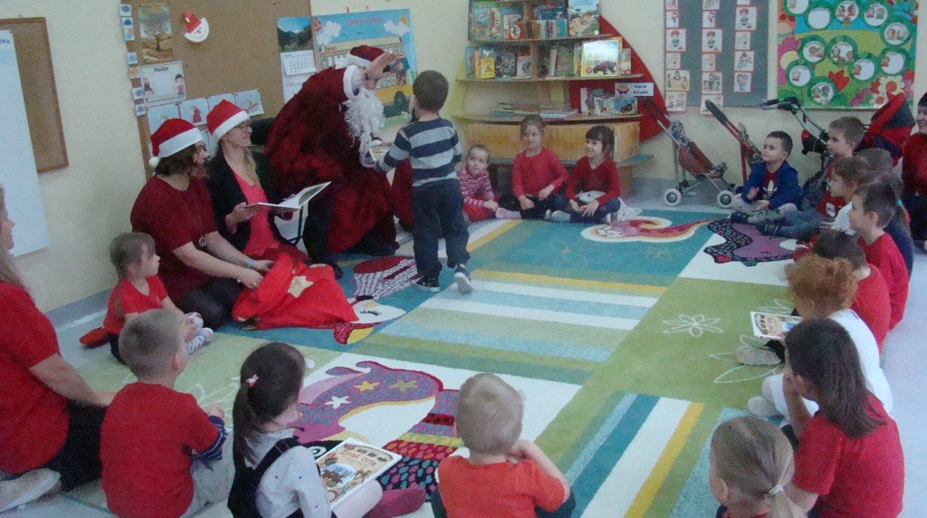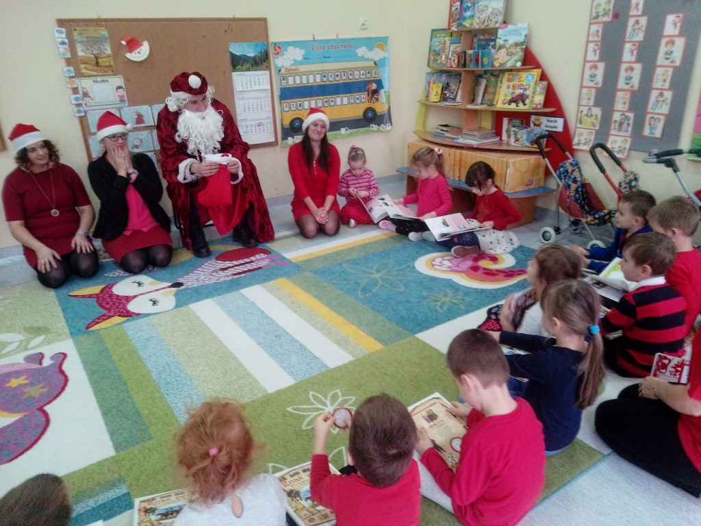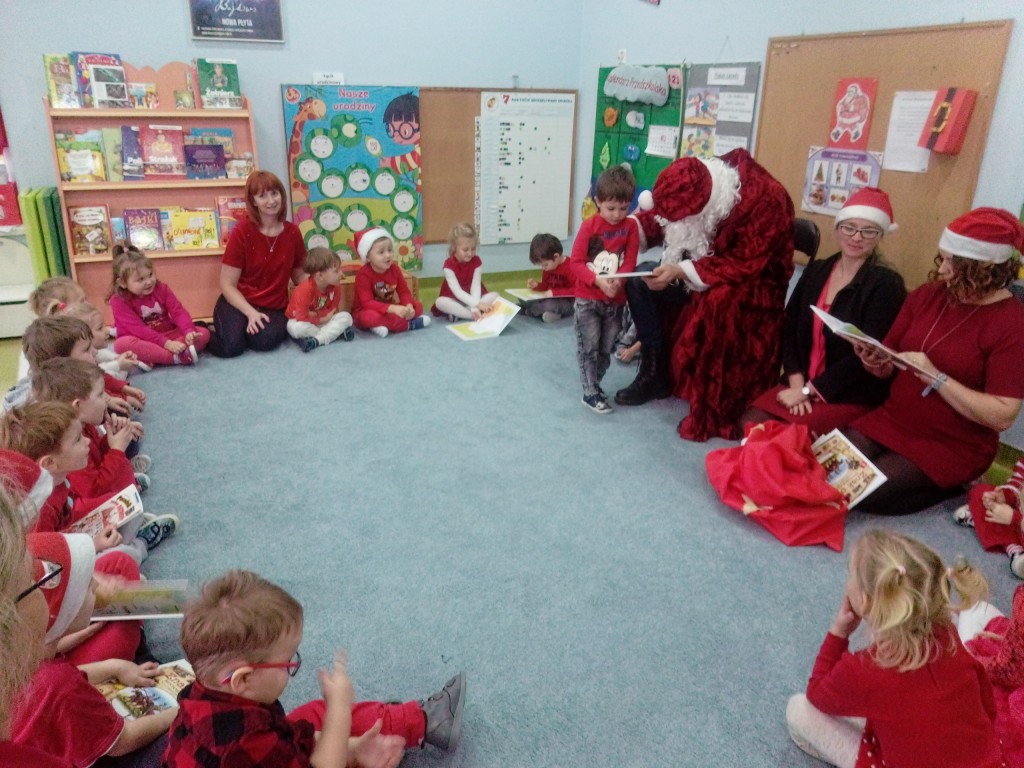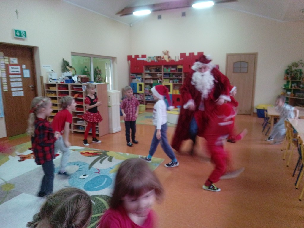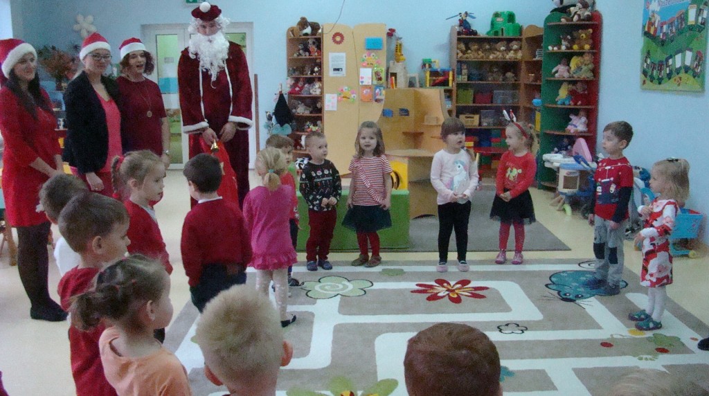 6 grudnia jak co roku w naszym przedszkolu panowała wyjątkowa atmosfera. Wszystkie przedszkolaki czekały na przybycie długo oczekiwanego gościa. Kiedy za drzwiami rozległ się głos dzwonka, dzieci już wiedziały, że to św. Mikołaj przybył do nich z workiem prezentów. Na jego wizytę cierpliwie czekały cały rok. Wcześniej nauczyły się piosenek i wierszy, które specjalnie dla Niego przygotowały. Każda grupa zaprezentowała swoje umiejętności wokalne i recytatorskie. Spotkanie z Mikołajem minęło radosnej atmosferze. W tym roku otrzymał on od dzieci szczególny prezent, a mianowicie były to serduszka z dobrymi uczynkami, o które Mikołaj prosił dzieci w liście skierowanym do nich. Wpisując się w obchody Dni Dobrego Słowa oraz tradycję ubierania choinki, Mikołaj poprosił dzieci, aby zawiesiły te serduszka na choince w holu przedszkola, tak by mógł zobaczyć , jakimi dobrymi dziećmi są nasze przedszkolaki. Na zakończenie Mikołaj obdarował wszystkich prezentami. Miłym akcentem spotkania były wspólne zdjęcia z naszym gościem.