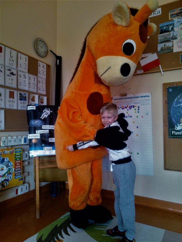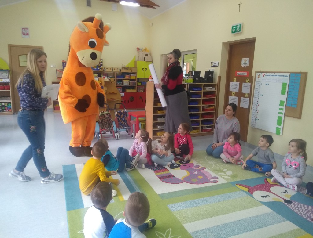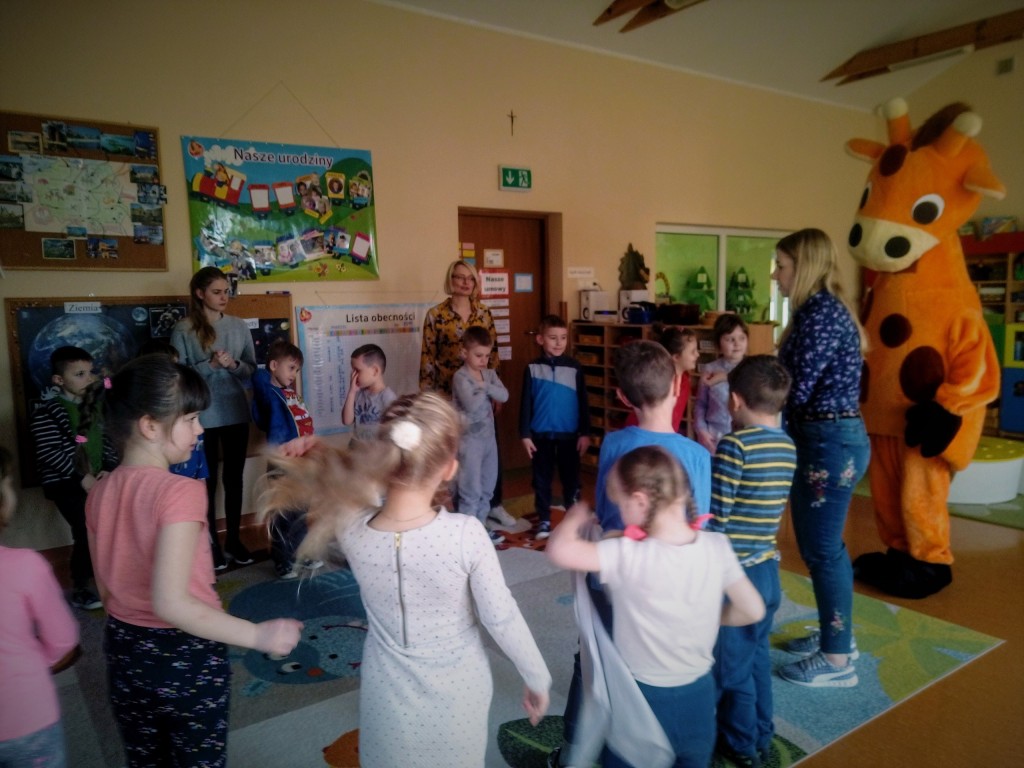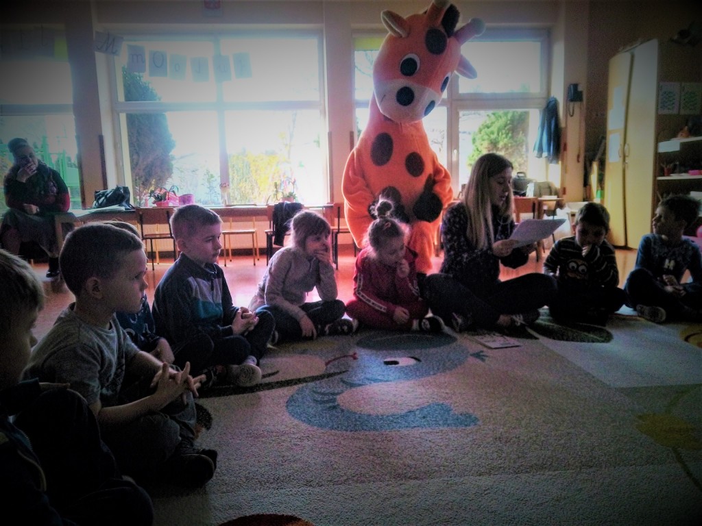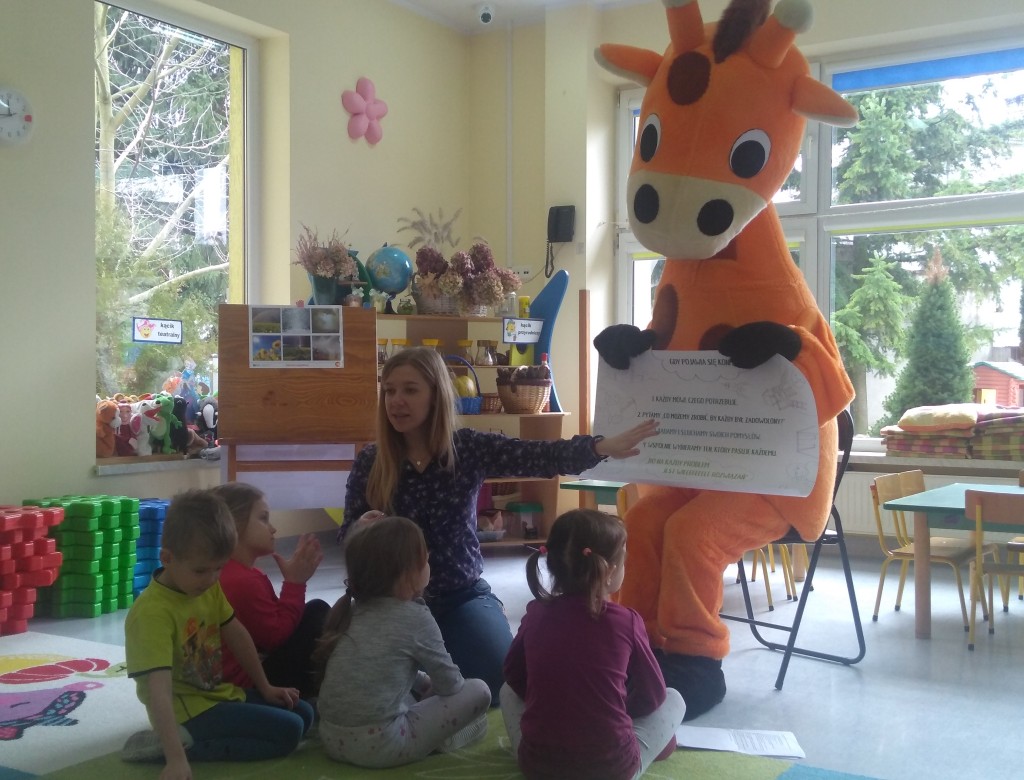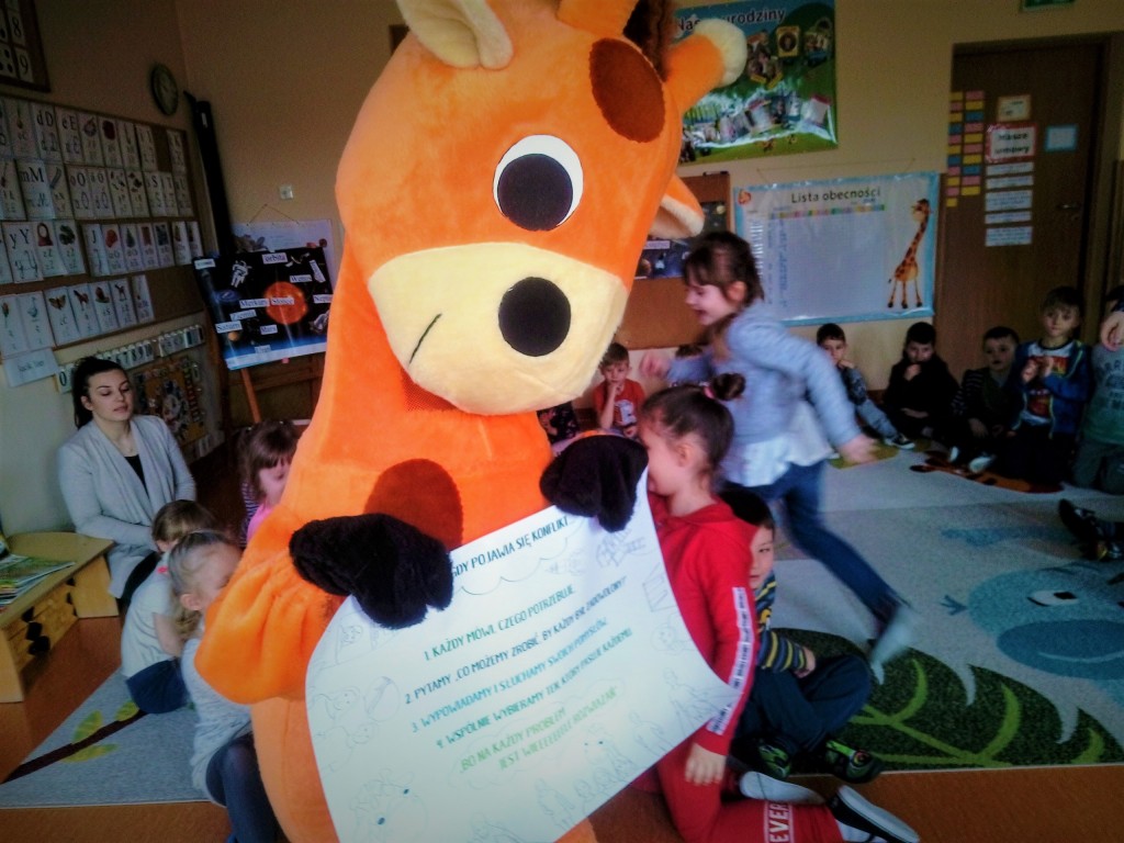 Dnia 5 marca nasze przedszkole odwiedził wyjątkowy gość – Żyrafa Ola – przyjaciółka z naszego podręcznika, która uczyła nas rozwiązywać konflikty w swoim języku – czyli Języku Żyrafy (Porozumienie Bez Przemocy).