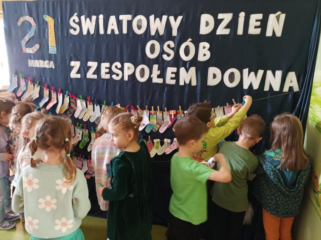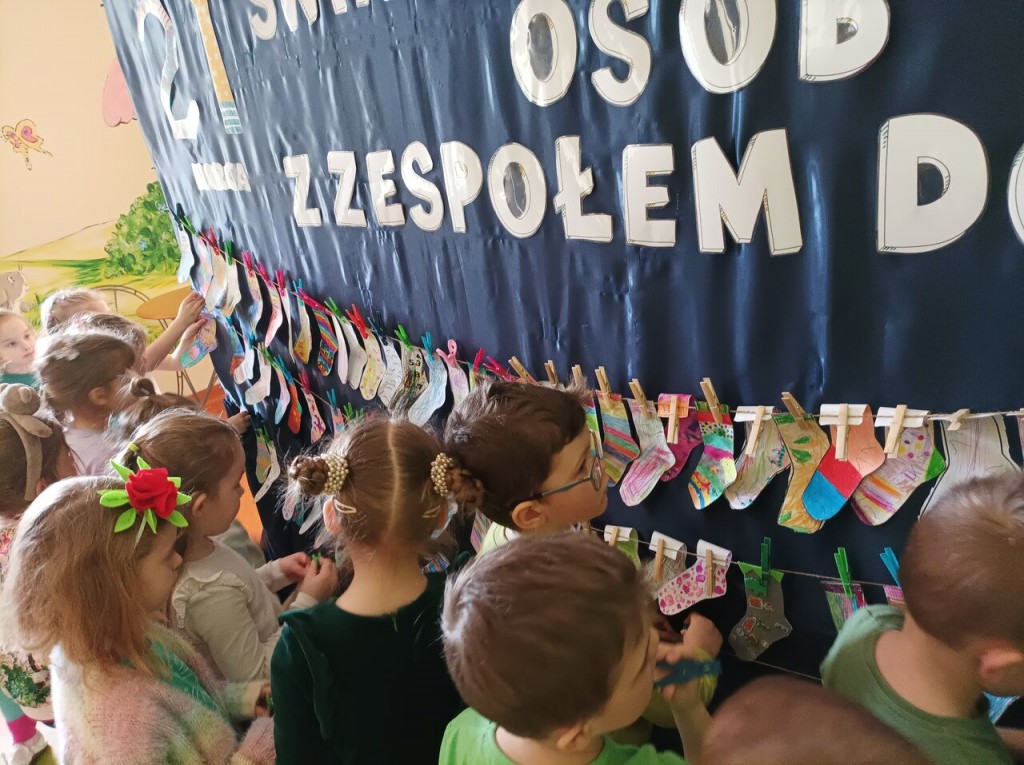 21 marca solidaryzowaliśmy się z osobami z Zespołem Downa i przyszliśmy do przedszkola w dwóch różnych skarpetkach, które symbolizują chromosomy nie do pary. Zdjęcia z tego wydarzenia znajdują się na przedszkolnym facebooku.