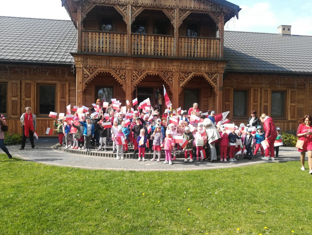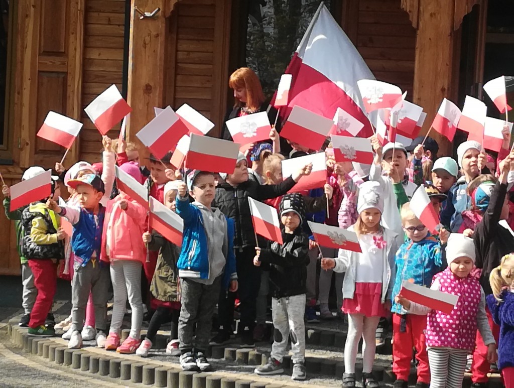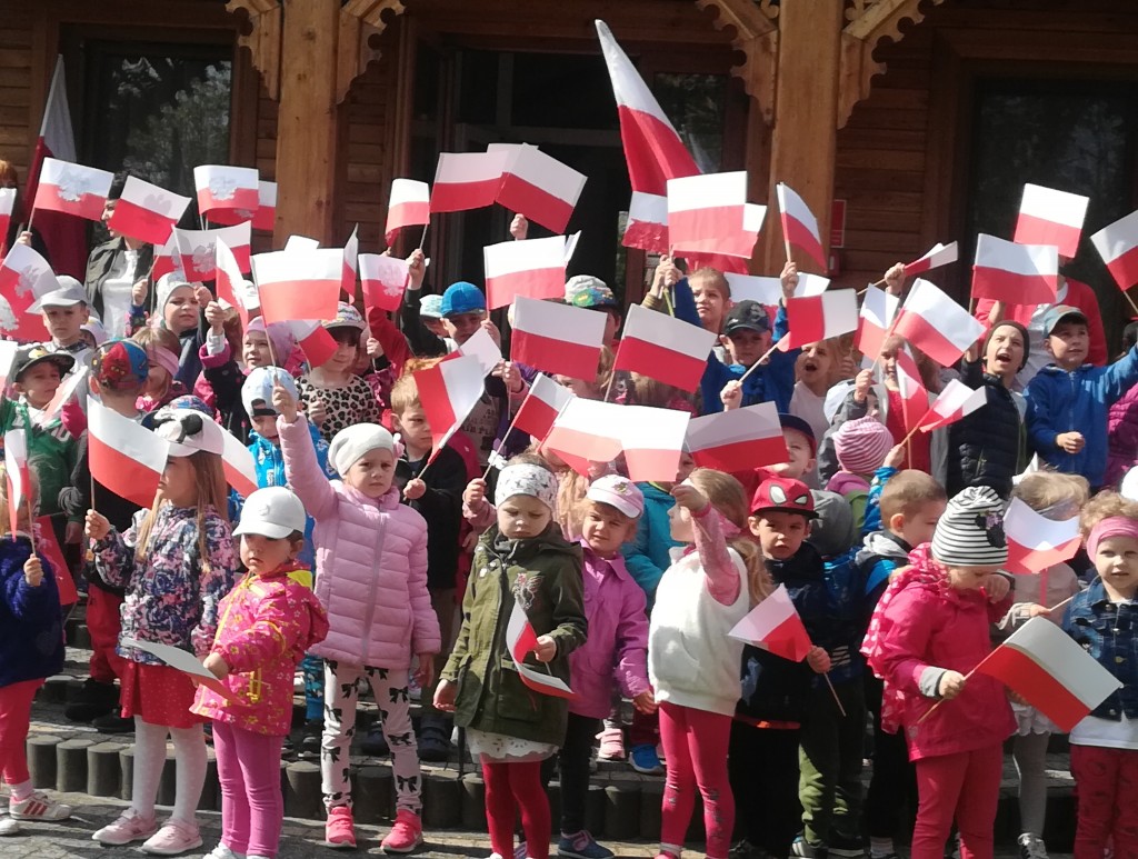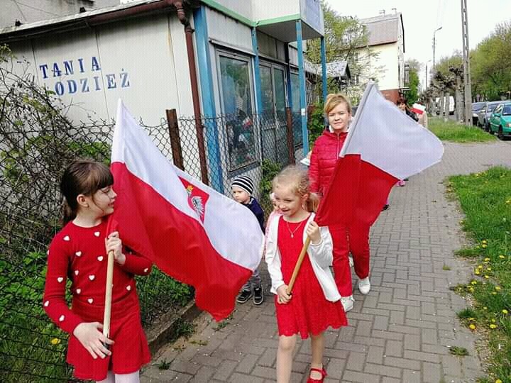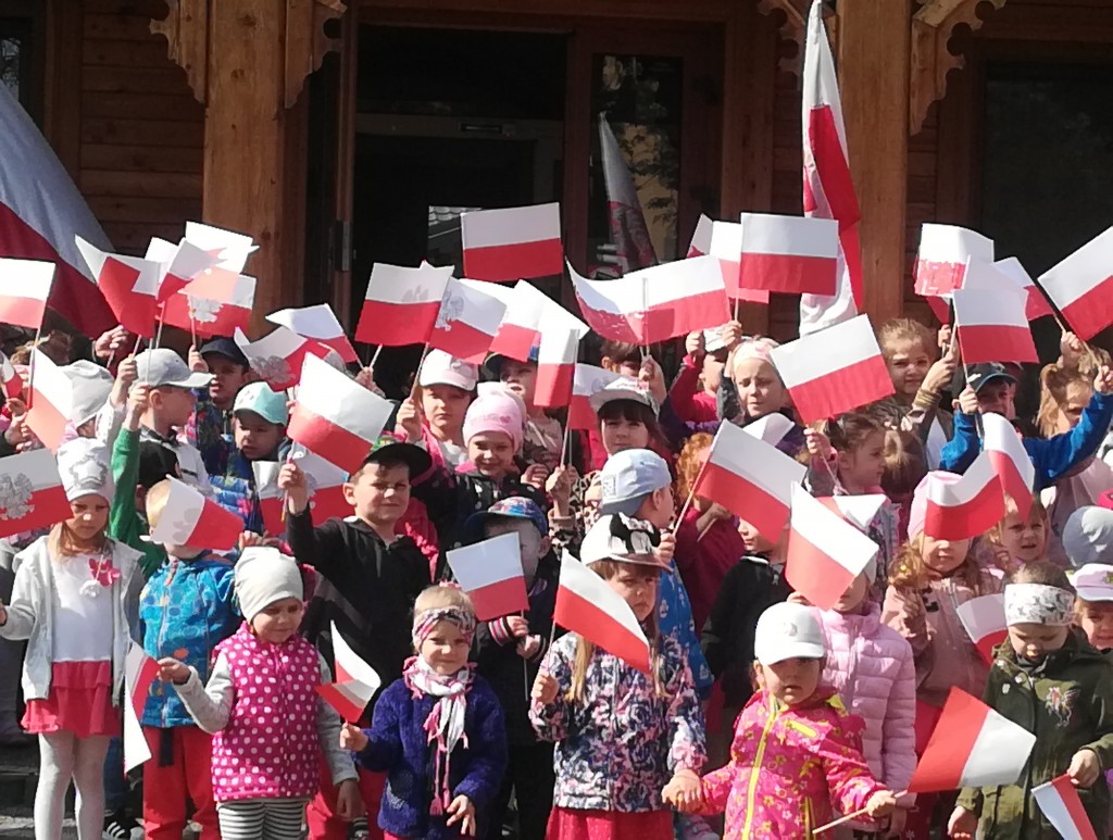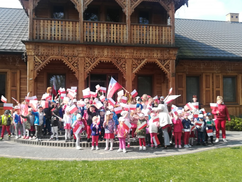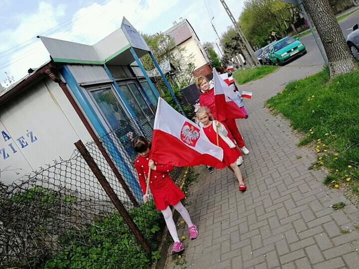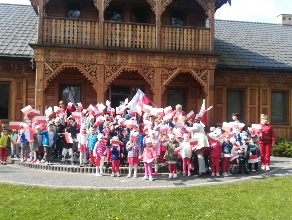 Dnia 2 maja w całej Polsce jest obchodzony Dzień Flagi a 3 maja rocznica uchwalenia Konstytucji 3 maja. Włączając się w obchody zbliżających się świąt majowych mali patrioci z naszego przedszkola dnia 29 kwietnia udali się na przemarsz ulicami naszego miasta z biało-czerwonymi flagami. Dzieci dumnie demonstrowały swój patriotyzm i poszanowanie dla symboli narodowych.