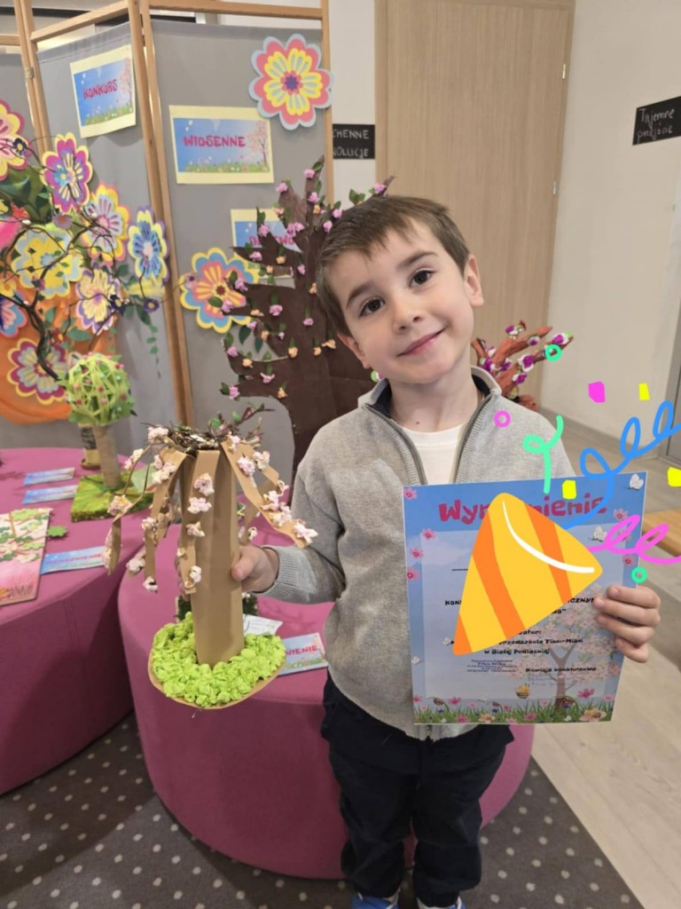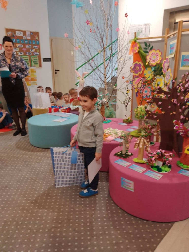 Liczna delegacja naszego przedszkola uczestniczyła w międzyprzedszkolnym konkursie plastycznym "Wiosenne drzewko" zorganizowanym przez Przedszkole Niepubliczne Fiku Miku. Nagrody i wyróznienia zdobyli Mila, Jaś D., Jaś R. i Dawid. Gratulujemy