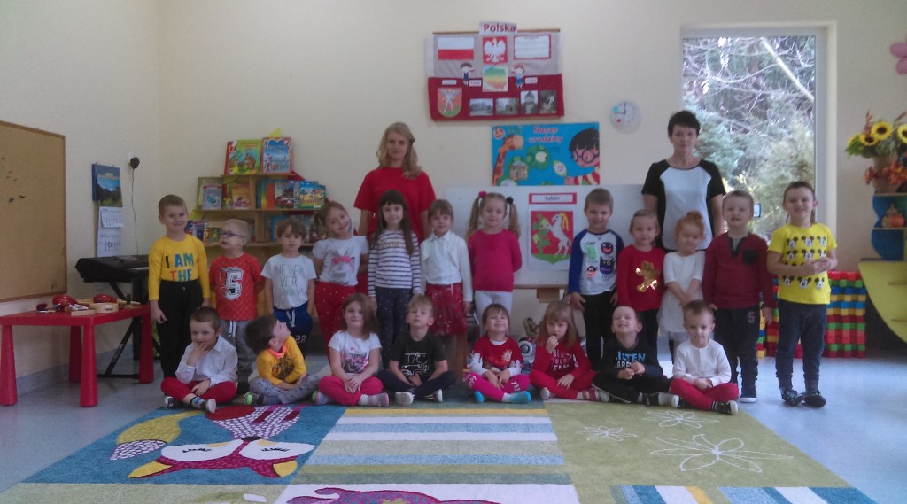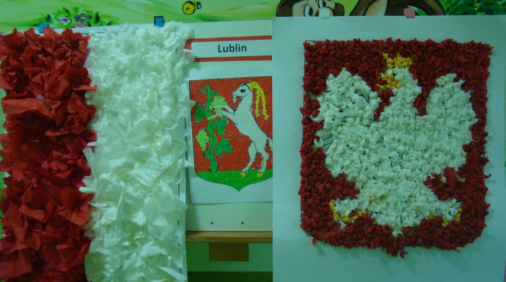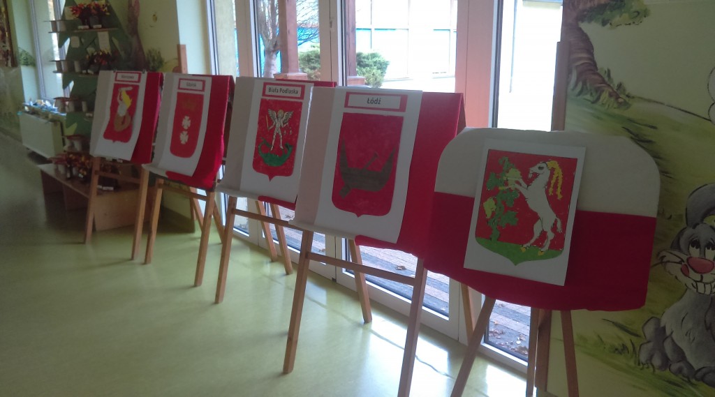 Z okazji 100 rocznicy Odzyskania przez Polskę Niepodległości w naszym przedszkolu przygotowana została Wystawa Herbów Miast Polski. Każda grupa przedszkolna wykonała dowolną techniką plastyczną herb wybranego miasta polskiego. Herby Warszawy, Białej Podlaskiej, Łodzi, Gdańska i Lublina można podziwiać idąc korytarzem przedszkolnym wśród biało czerwonych symboli narodowych wykonanych przez małych przedszkolaków.