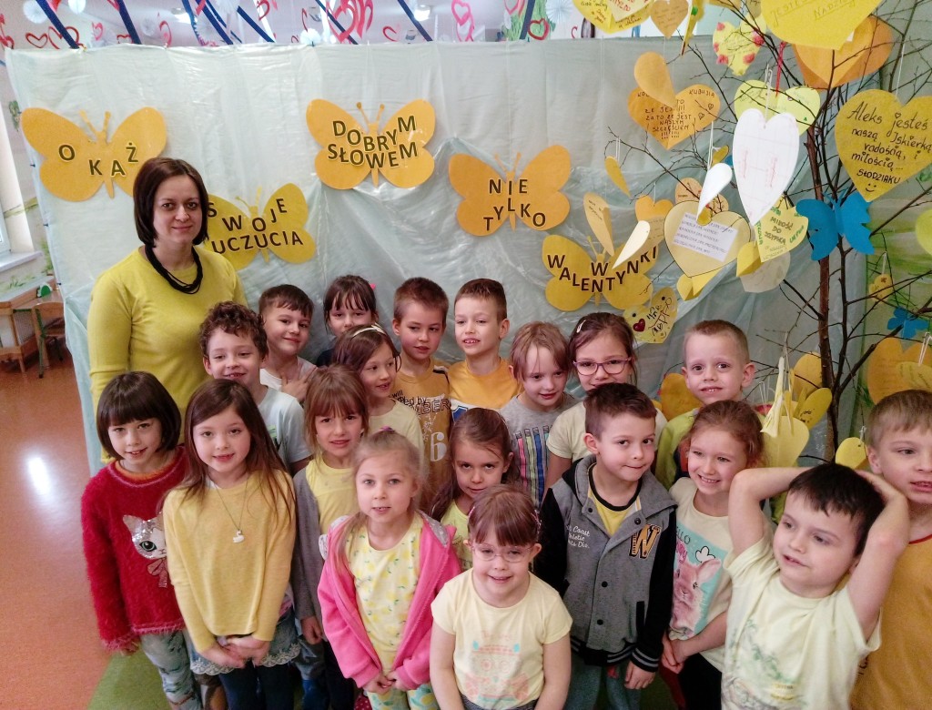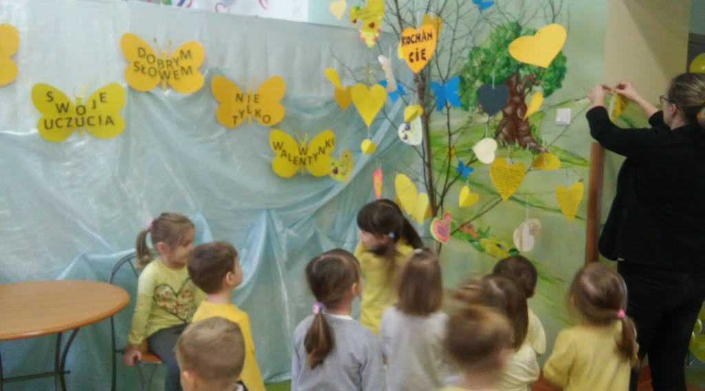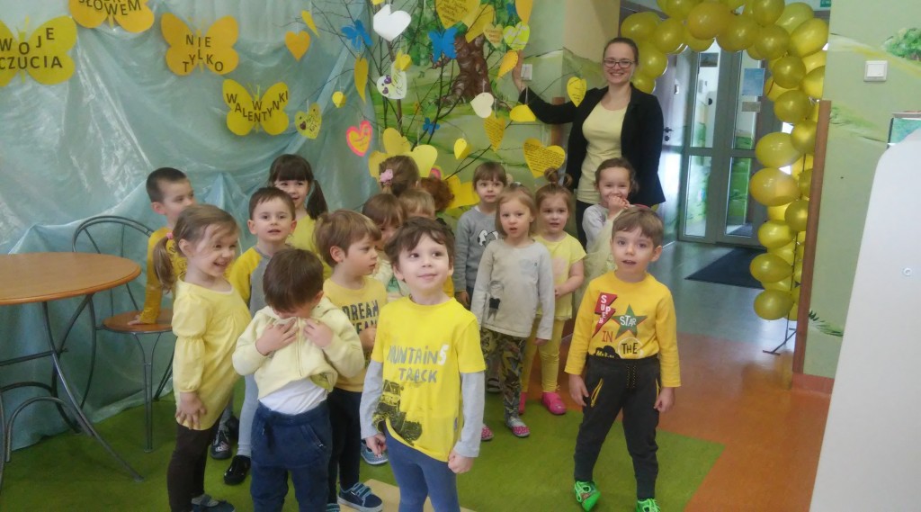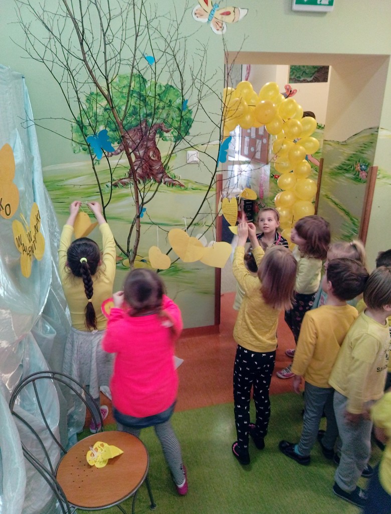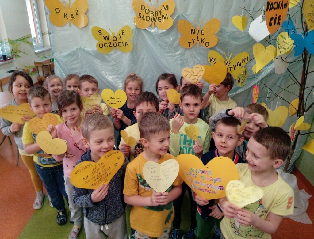 W lutym, połączyliśmy świętowanie Dnia Dobrego Słowa z Walentynkami. "Okazuj swoje uczucia dobrym słowem - nie tylko w Walentynki" - to hasło przewodnie tego świętowania. Tego dnia w przedszkolu pojawiło się drzewo pełne żółtych serc ze słowami, które mówią o rodzicielskiej miłości. Dziękujemy Wam Szanowni Rodzice za Wasze ogromne zaangażowanie i wspieranie naszych działań. Z wielkim wzruszeniem czytałyśmy Wasze słowa zapisane na tych sercach. Widziałyśmy radość i szczęście na twarzach Waszych dzieci kiedy im to czytałyśmy oraz ich zaangażowanie w wykonywanie serc dla Was.