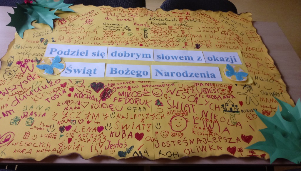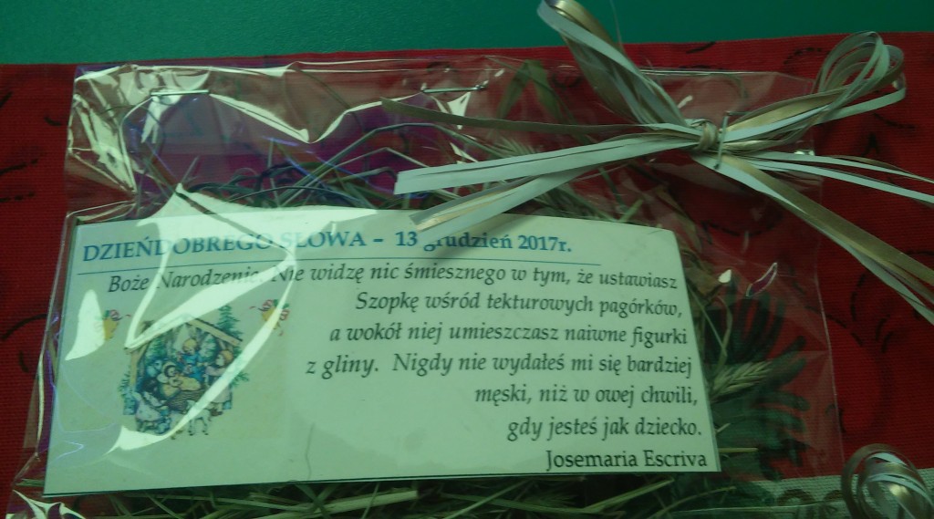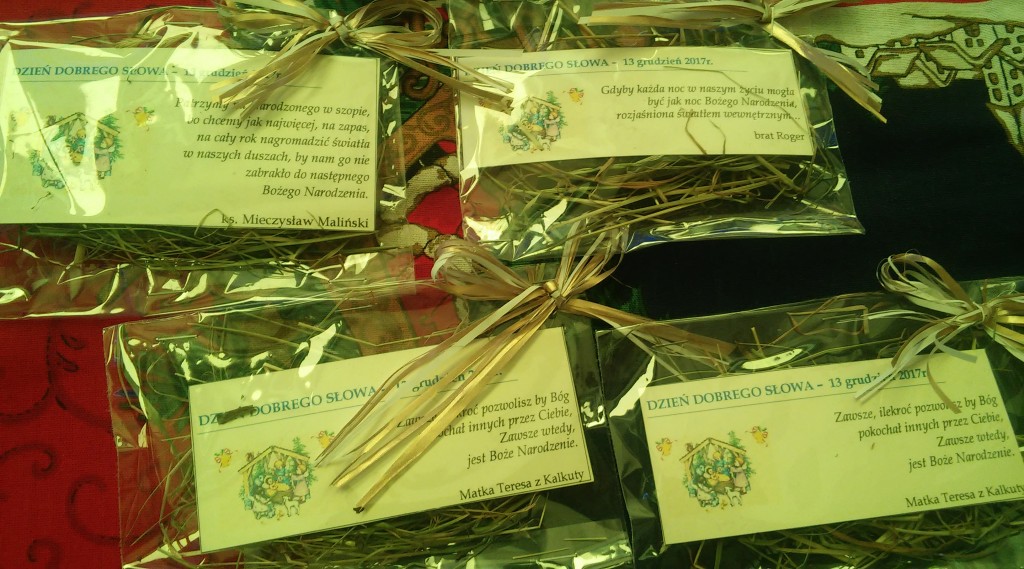 Grudniowe świętowanie Dnia Dobrego Słowa połączyliśmy ze świętowaniem Narodzin Jezusa - przygotowaliśmy "Sianko z dobrym słowem". "Zawsze, ilekroć uśmiechasz się do swojego brata i wyciągasz do niego ręce, jest Boże Narodzenie. Zawsze, kiedy milkniesz, aby wysłuchać, jest Boże Narodzenie." św. Matka Teresa z Kalkuty - to jedna z myśli, która została dołączona do sianka na wigilijny stół.
