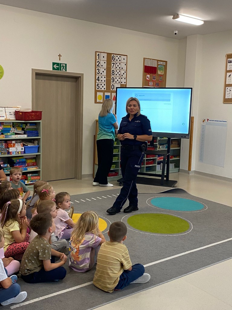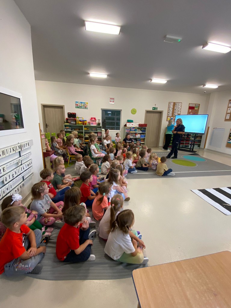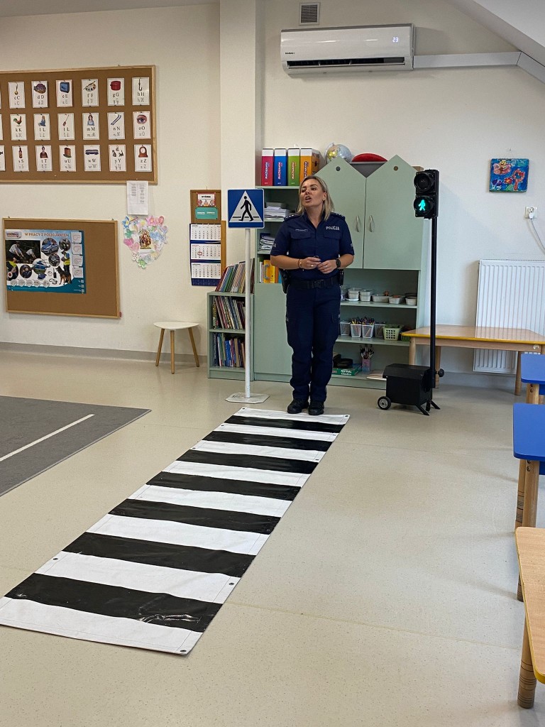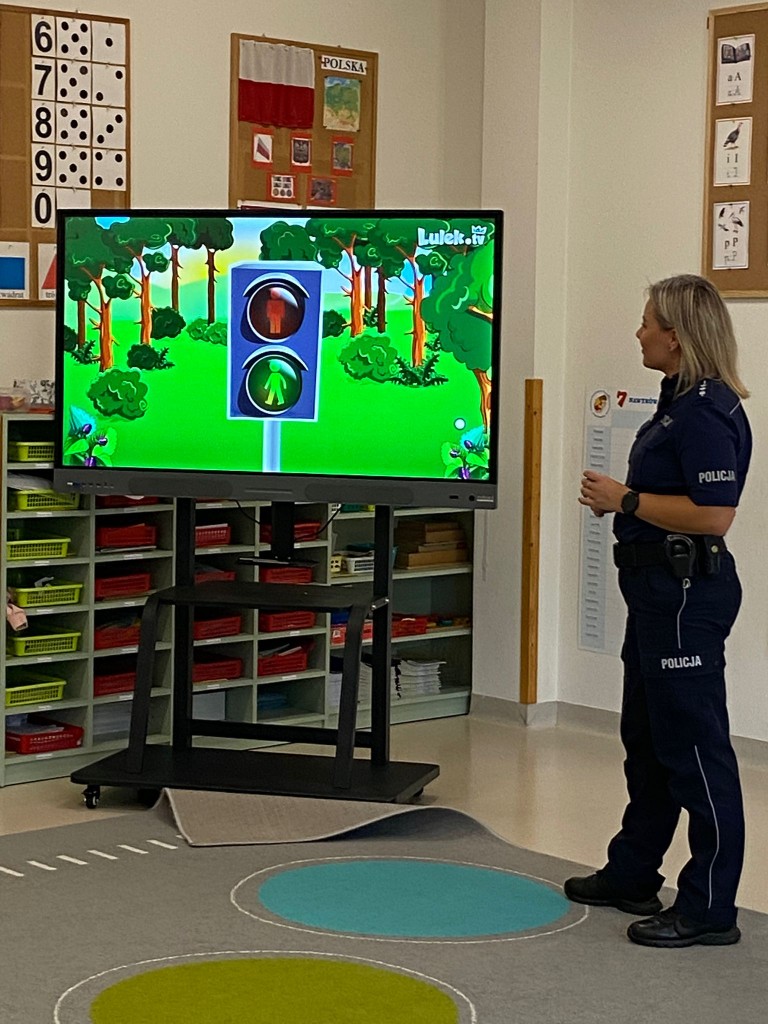 Podczas spotkania z funkcjonariuszkami policji mieliśmy możliwość po raz kolejny przypomnieć sobie zasady bezpiecznego przechodzenia przez ulicę z sygnalizacją świetlną i bez, tylko po pasach. Najpierw obejrzeliśmy krótki film edukacyjny, a potem mogliśmy sprawdzić znajomość zasad w praktyce, tak, by zawsze być odpowiedzialnym uczestnikiem ruchu drogowego.