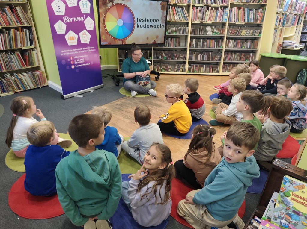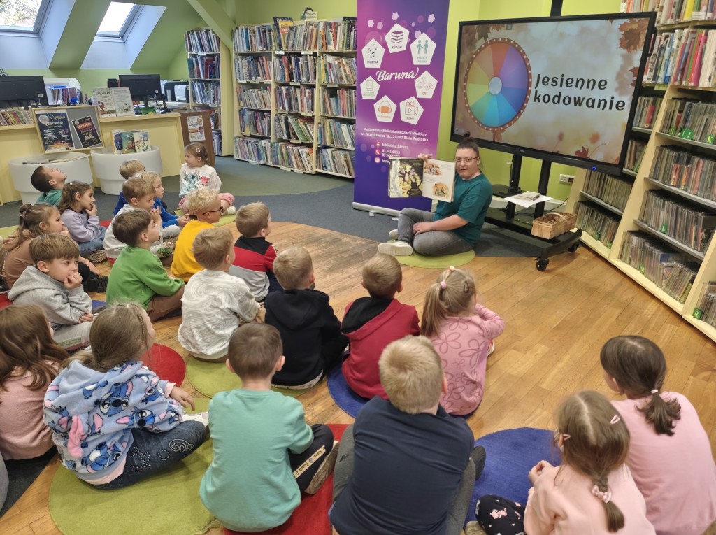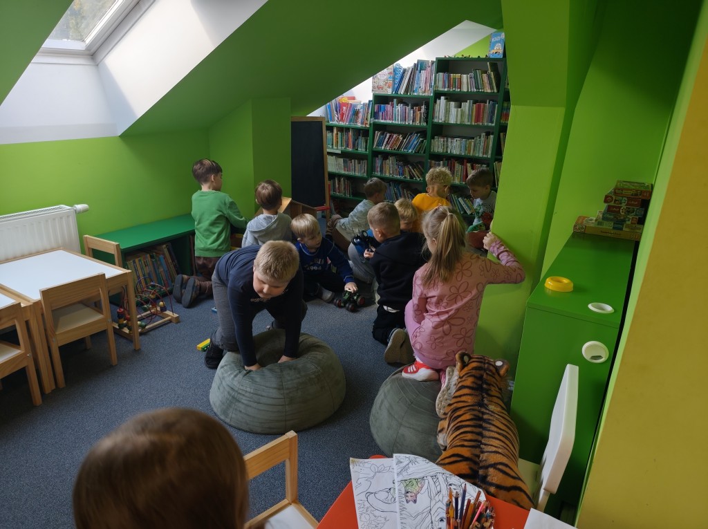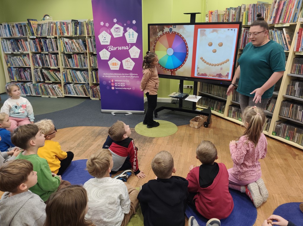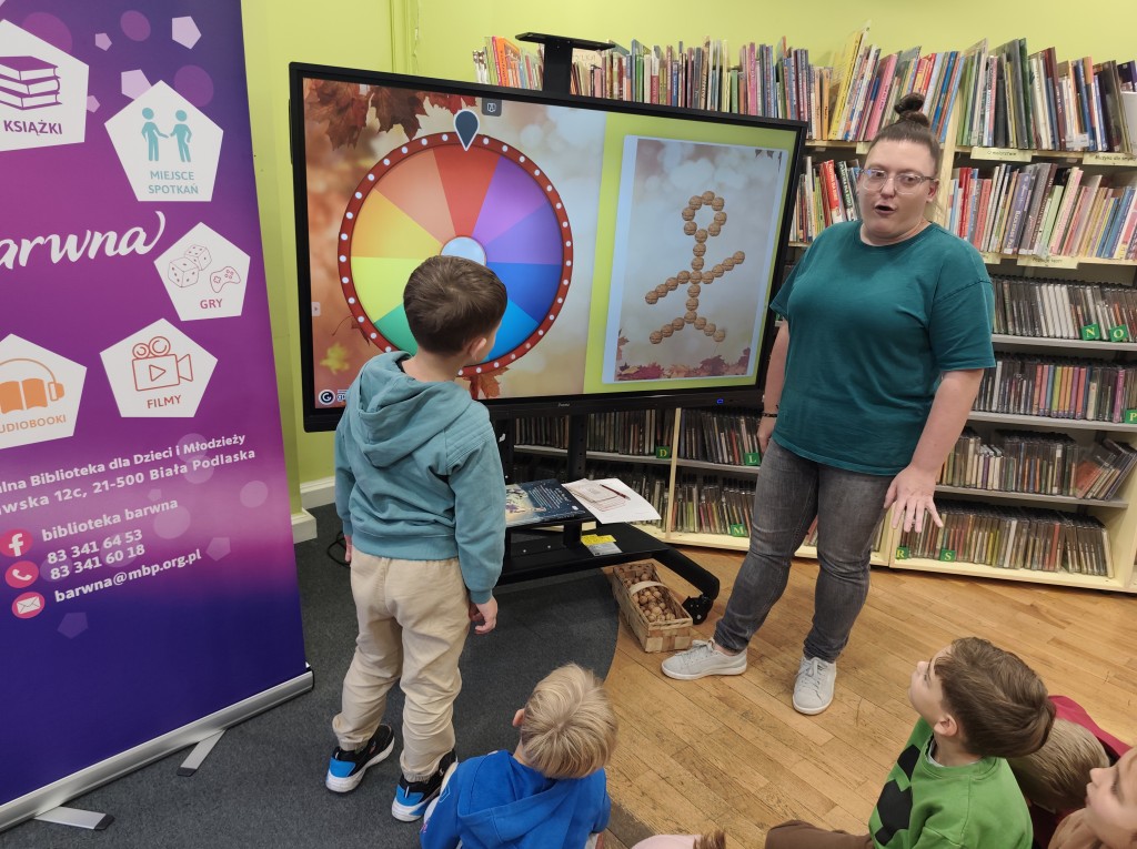 Nasze pierwsze zajęcia w "Barwnej" Multimedialnej Bibliotece dla Dzieci i Młodzieży w Białej Podlaskiej obejmowały różnorodne aktywności, takie jak czytanie bajek, zabawy multimedialne na tablicy interaktywnej oraz gry rozwijające spostrzegawczość i koncentrację. Poznaliśmy także strukturę biblioteki i jej zasoby. Celem wycieczki było połączenie zabawy i nauki ze światem literatury. Dziękujemy!