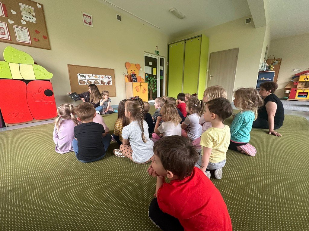 W maju naszą grupę odwiedziła Pani Natalia - mama Jadzi, aby spędzić z nami czas, wspólnie czytając książki. Podczas spotkania mieliśmy okazję posłuchać opowiadania "Miś i ciemność". Dowiedzieliśmy się, że każdy ma prawo się bać, ale z pomocą bliskich można pokonać swoje lęki.