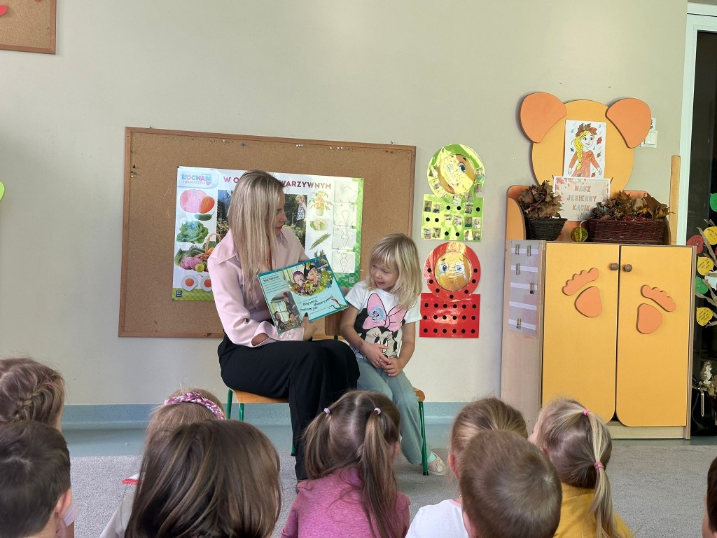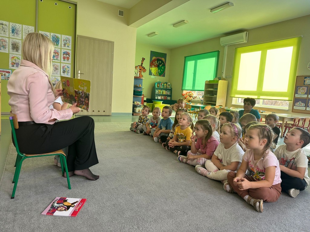 W ramach ogólnopolskiej akcji Cała Polska czyta dzieciom do wspólnego czytania w październiku włączyli się: tata Juli Dz. - Pan Łukasz oraz mama Milenki - Pani Anna. Podczas spotkania mieliśmy okazję posłuchać mądrych i pełnych humoru opowieści czytanych przez naszych gości. Z ogromnym zainteresowaniem śledziliśmy losy bohaterów, a wspólne czytanie stało się okazją do rozmowy o wartościach, przyjaźni i wyobraźni.