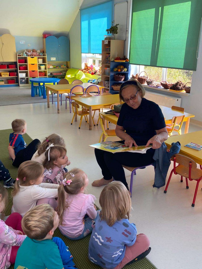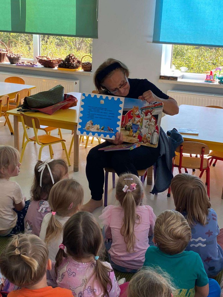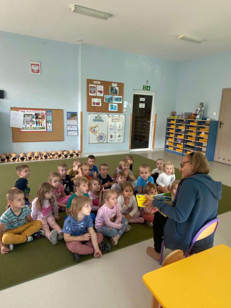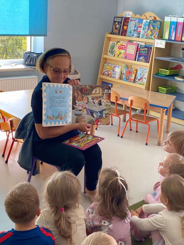 Drugiego października naszą grupę po raz kolejny odwiedziła pani Teresa- babcia Wojtka. Przyniosła ze sobą kilka ulubionych książek Wojtka. Podczas czytania mogliśmy oglądać kolorowe ilustracje, a także zadawać pytania, na które pani Teresa cierpliwie i wyczerpująco odpowiadała. Bardzo dziękujemy za poświecony nam czas.