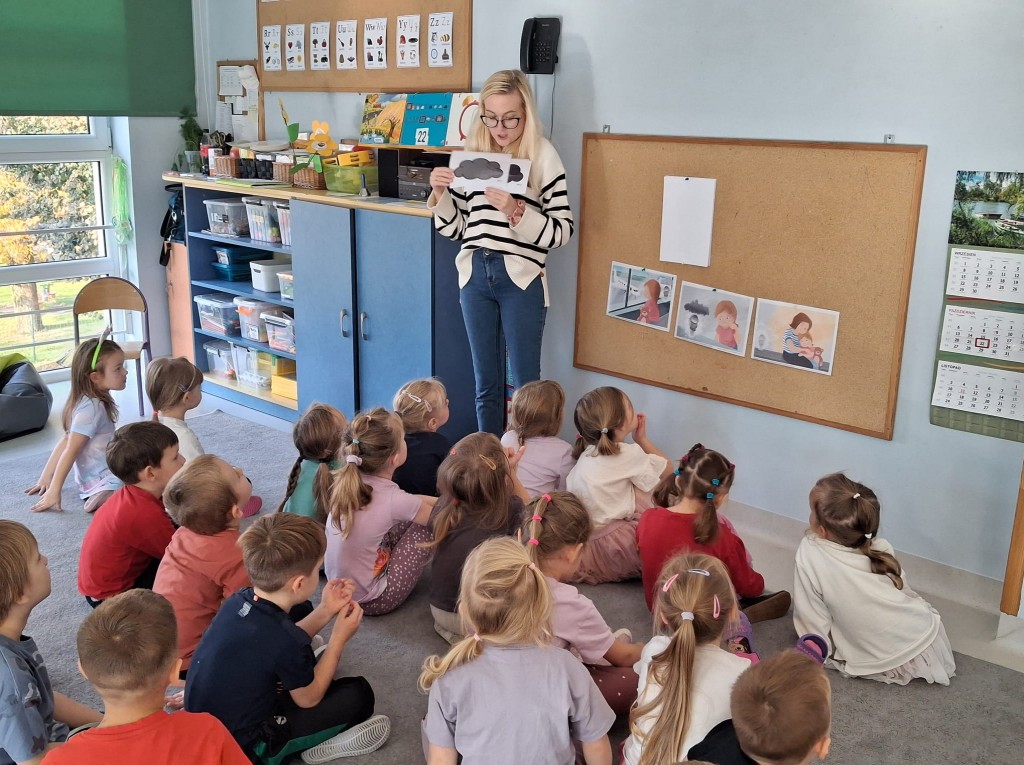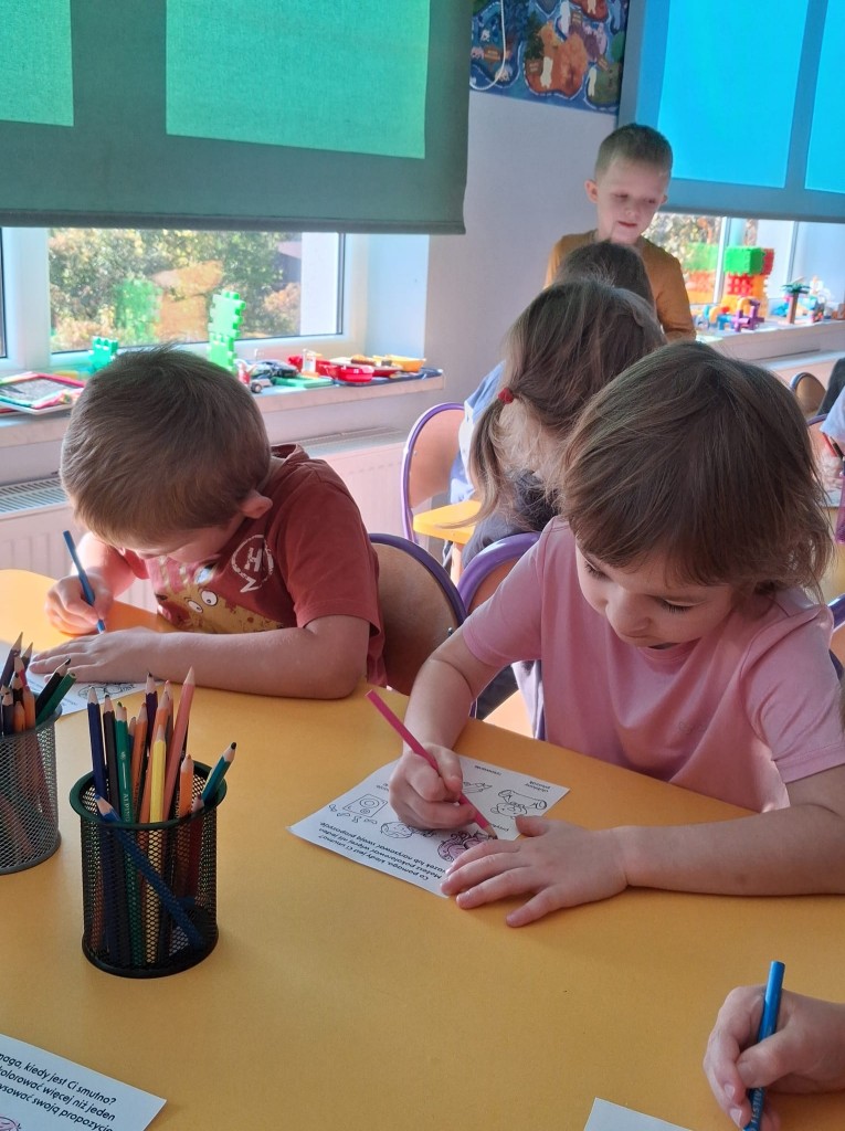 W październiku ponownie wybraliśmy się do świata „Czuciaków z Krainy Emocji”. Tym razem poznaliśmy Markotka, który zabrał nas na Wyspę Smutku. Po wysłuchaniu opowiadania o przygodach małej Matyldy, rozmawialiśmy na temat smutku oraz sytuacji, w których go odczuwamy. Następnie dowiedzieliśmy się, że każdy z nas odczuwa smutek na różne sposoby oraz w różnym natężeniu. Na zakończenie podaliśmy kilka przykładów na to, jak możemy poradzić sobie ze smutkiem.