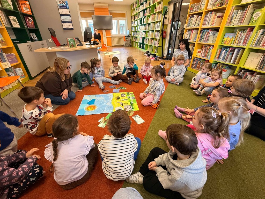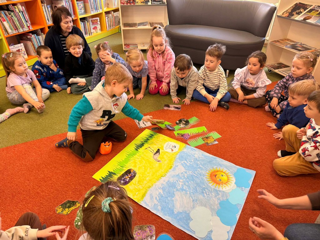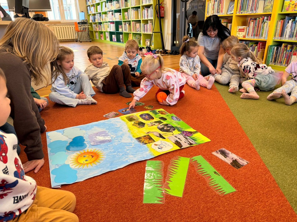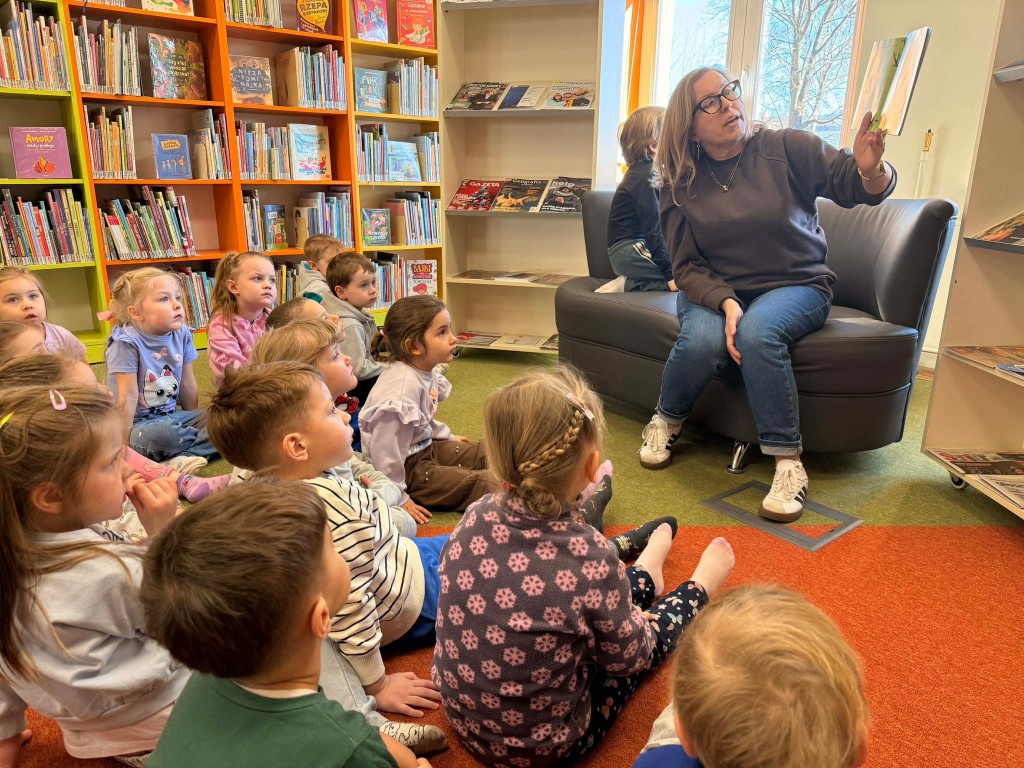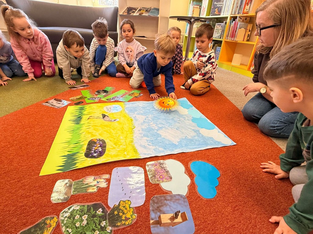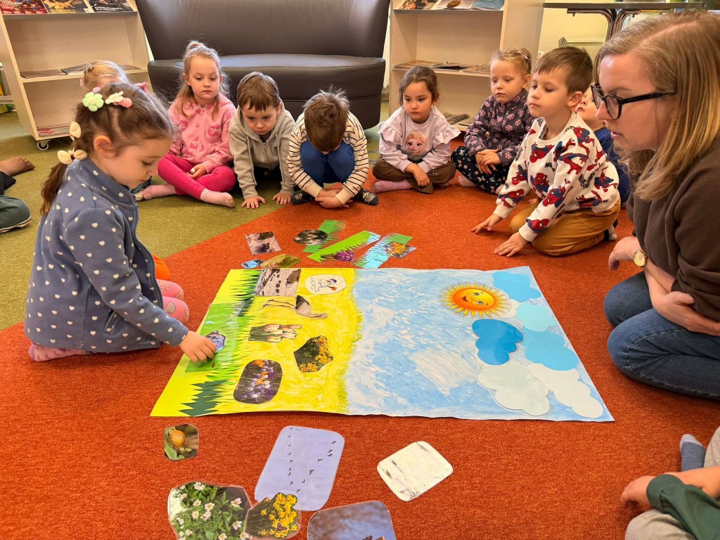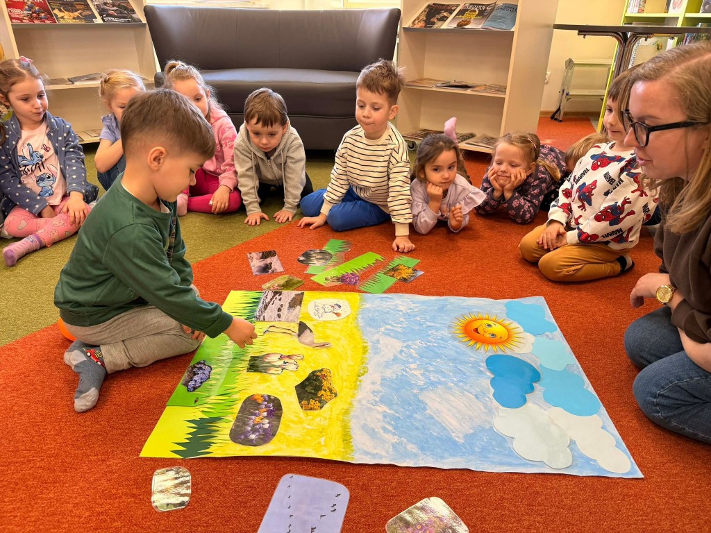 Dnia 9 marca po raz pierwszy udaliśmy się do Biblioteki Pedagogicznej. Podczas wizyty dzieci uczestniczyły w zajęciach o tematyce wiosennej. Wysłuchały opowiadania, rozmawiały o oznakach wiosny oraz brały udział w ciekawych aktywnościach przygotowanych przez panią bibliotekarkę. Dla wielu dzieci była to pierwsza wizyta w bibliotece, dlatego była to bardzo miła i wartościowa przygoda, która zachęciła je do sięgania po książki.