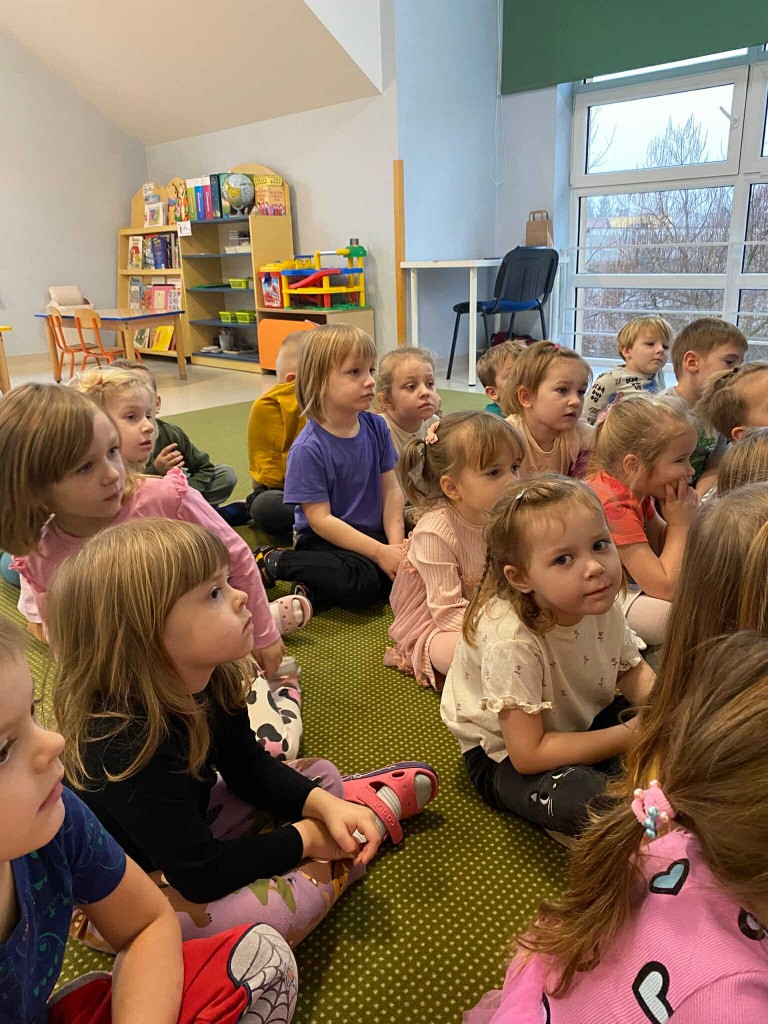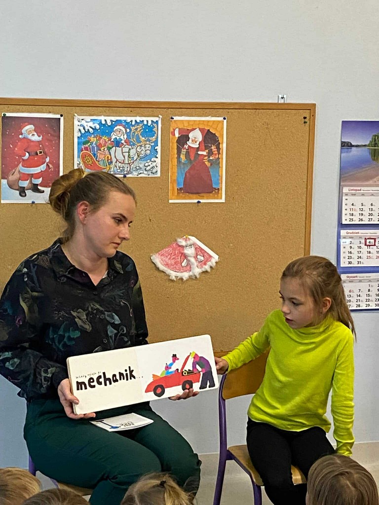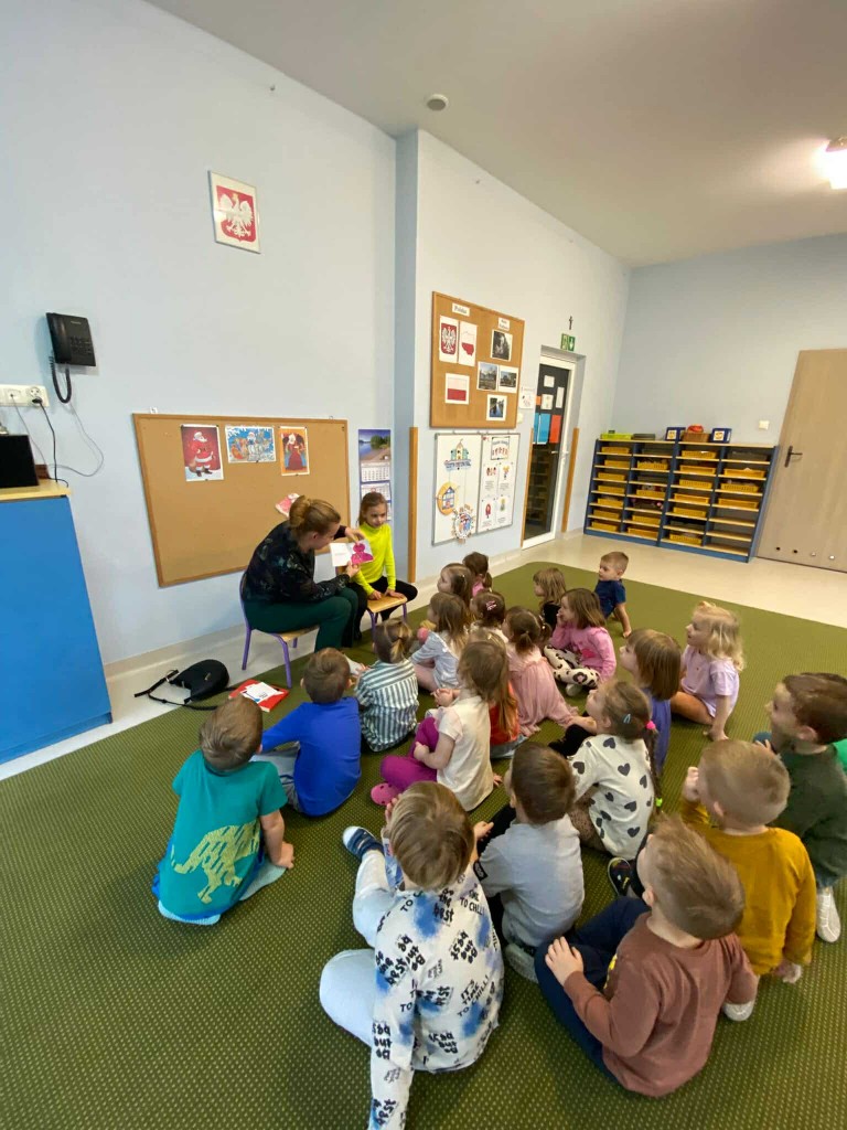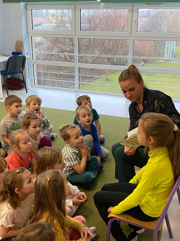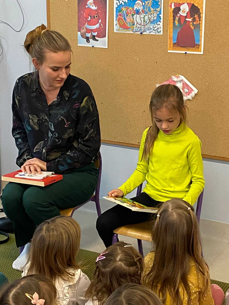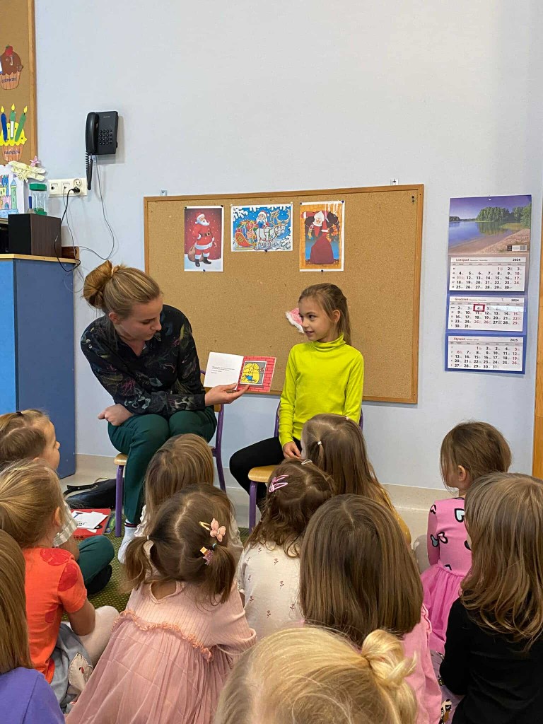 W pierwszym tygodniu grudnia mieliśmy przyjemność gościć panią Renatę- mamę Dawidka oraz jego siostrę Lidzię- absolwentkę naszego przedszkola, która aktualnie uczęszcza do klasy drugiej. Obie panie pięknie nam czytały, a Lidzia opowiadała nam też o tym, jakie przedmioty lubi w szkole najbardziej, jakie przysmaki zabiera do swojej śniadaniówki i nie uwierzycie- mówiła też o tym, że tęskni za przedszkolem i chętnie, by do niego wróciła!