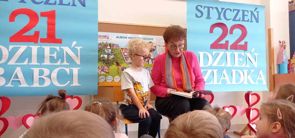 Mając na uwadze ogrom korzyści płynących z codziennego, głośnego czytania dzieciom, w styczniu nie tylko odwiedzali nas nasi rodzice: mama Tadeusza oraz tata Hanny, ale rownież mogliśmy gościć ważne i bliskie nam osoby, czyli naszych dziadków.
