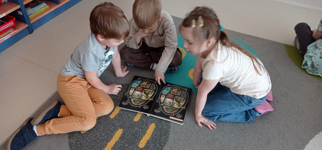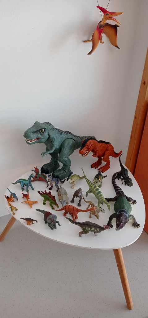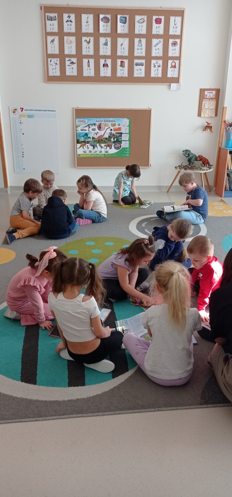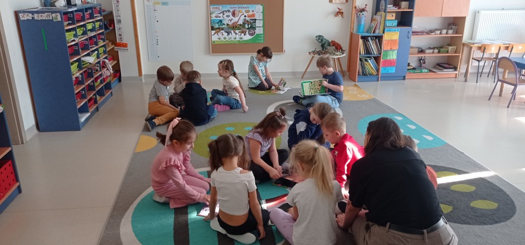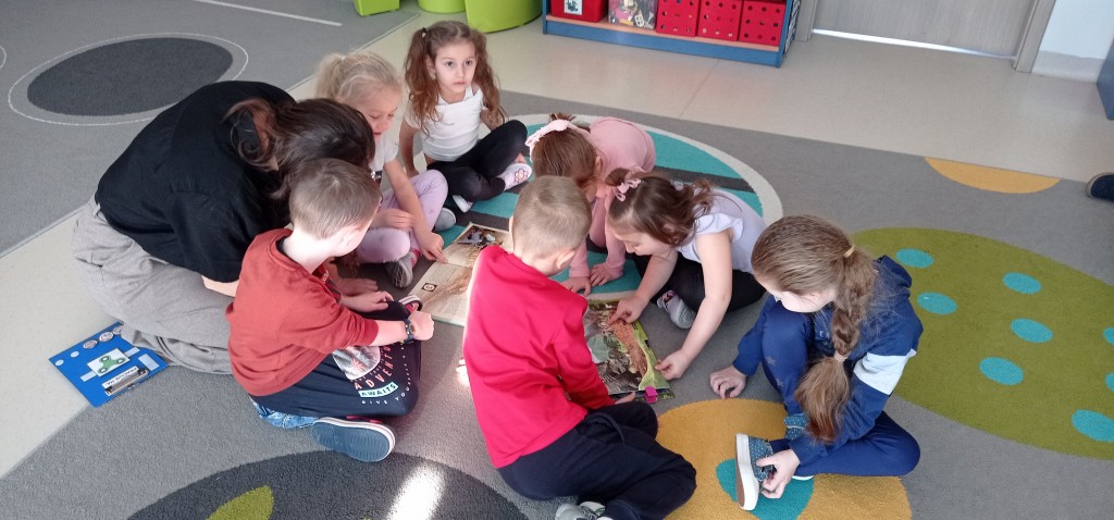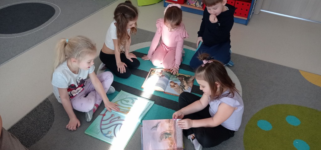 W lutym rozmawialiśmy o odległych czasach. Z tej okazji odbyliśmy niezwykłą podróż do świata prehistorycznych gadów. Nasza grupa zamieniła się w park jurajski, a w sali powstał czasowy kącik tematyczny. Realizując temat kompleksowy poświęcony prehistorii zgłębialiśmy wiedzę na temat życia dinozaurów oraz ludzi w dawnych czasach.