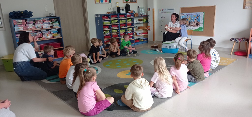 Wizyta małych przyjaciół była okazją do wzbogacania wiedzy na temat ich cech charakterystycznych, warunków niezbędnych do życia, ulubionego pożywienia oraz trybu funkcjonowania, zwyczajów, a także sposobu poruszania się. Przy tej okazji staraliśmy się uzasadniać, dlaczego należy unikać prowokowania i rozdrażniania zwierząt, a także określać, jakie są zagrożenia ze świata zwierząt dla zdrowia i życia swojego oraz innych osób.