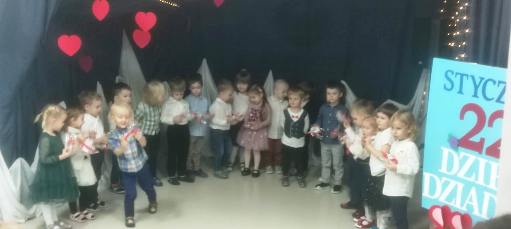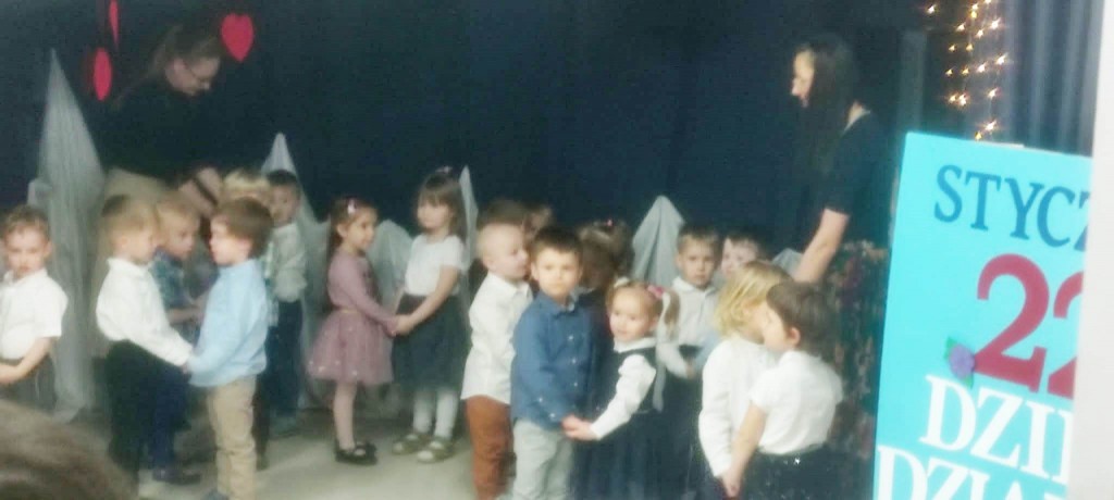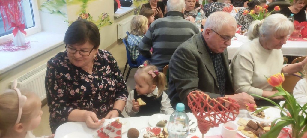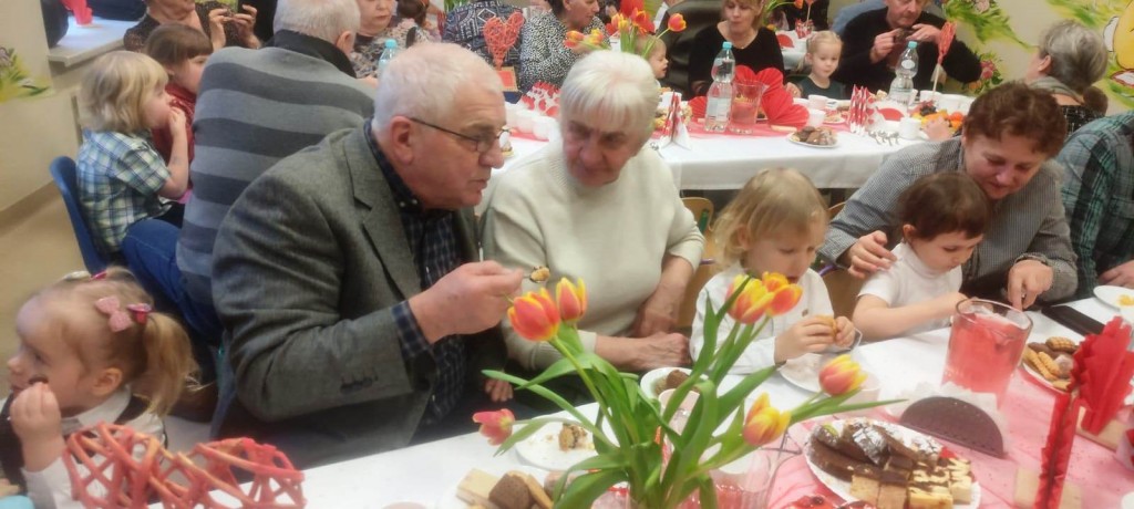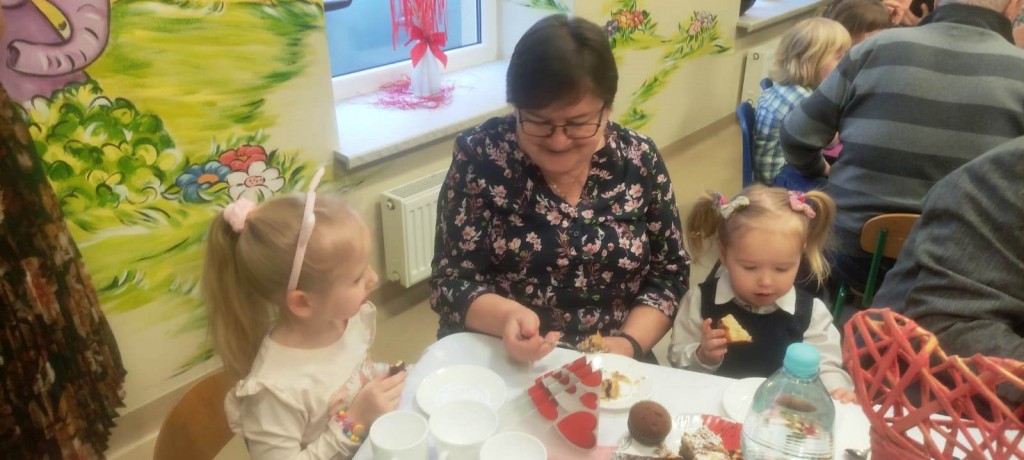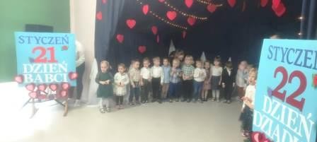 Uroczystość z okazji Dnia Babci i Dziadka w naszej grupie odbyła się 3 lutego. Zaproszeni goście mogli po raz pierwszy podziwiać swoje wnuki, które tego dnia stały się prawdziwymi aktorami. Dzieci przygotowały dla dziadków najpiękniejsze życzenia wyrażone wierszem, tańcem i piosenką z odwagą i zaangażowaniem prezentowały swoje umiejętności. Po części artystycznej dzieci obdarowały swoich bliskich upominkami. Goście zostali zaproszeni na słodki poczęstunek, podczas którego panowała serdeczna atmosfera.
