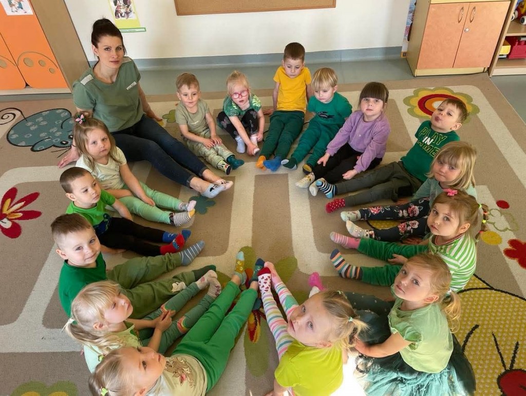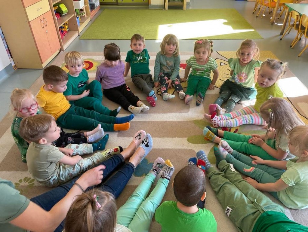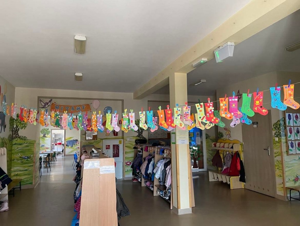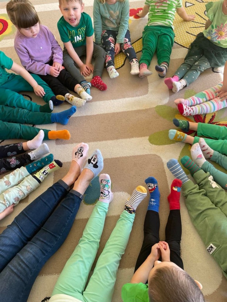 W piątek 21 marca oprócz powitania wiosny w naszym przedszkolu obchodziliśmy Światowy Dzień Osób z Zespołem Downa. Wyrażając akceptację, tolerancję i solidarność z osobami z Zespołem Downa założyliśmy kolorowe skarpetki „nie do pary”. Poznaliśmy symbolikę kolorowych skarpetek, wysłuchaliśmy wiersza D. Kluski „Kolorowe skarpety” oraz wyklejaliśmy gotowymi elementami szablony skarpet, które zostały wywieszone w holu naszego przedszkola.