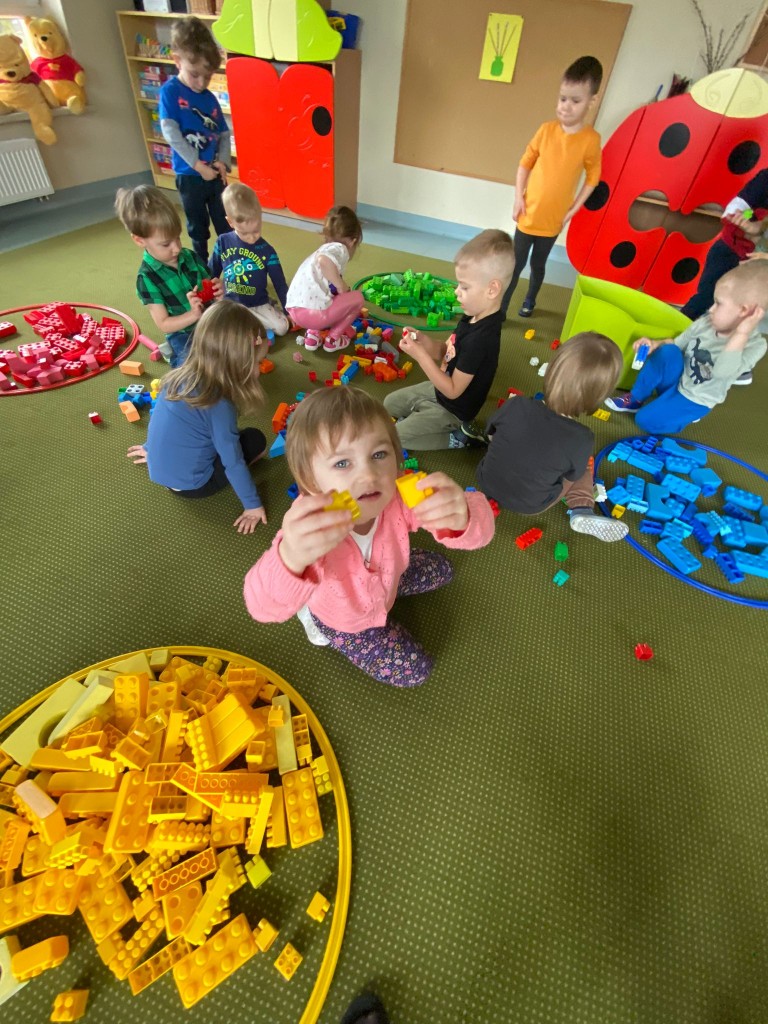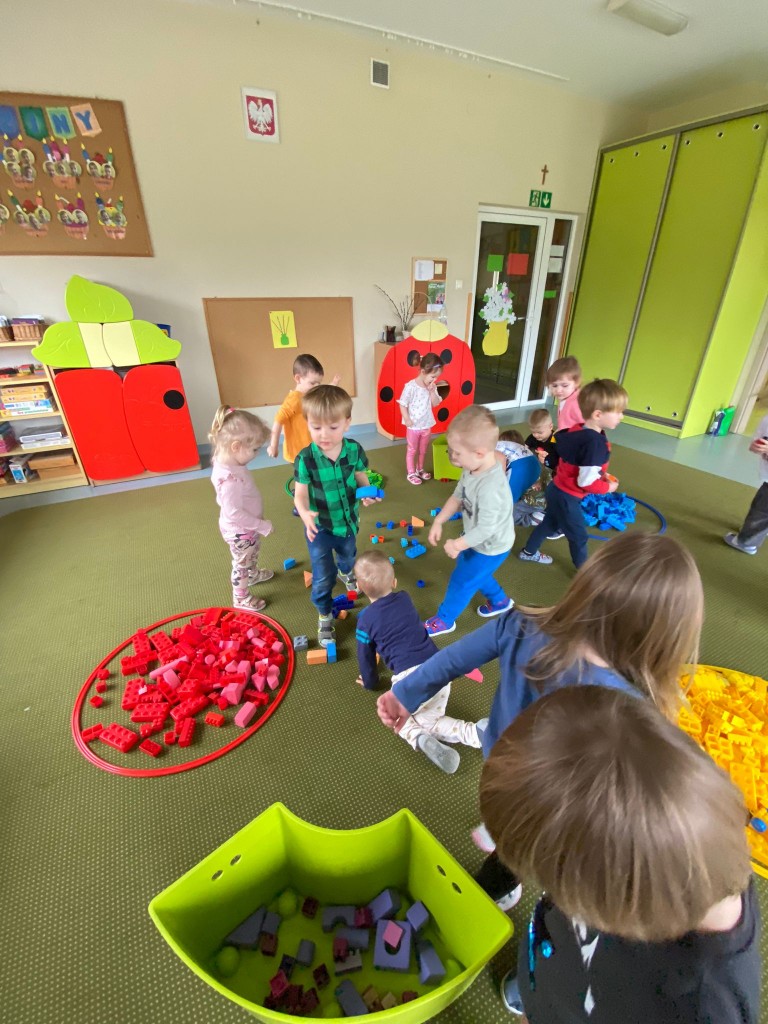 W Dniu Matematyki - 14 marca, na porannych zajęciach segregowaliśmy różnego rodzaju klocki wg koloru. Bardzo sprawnie nam to poszło, a przy okazji ćwiczyliśmy umiejętność rozpoznawania kolorów podstawowych. Potem bawiliśmy się świetnie przy budowaniu z nich wież i zamków.