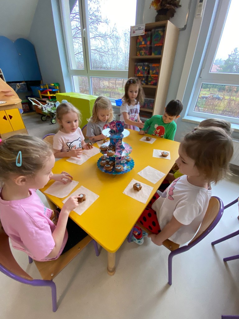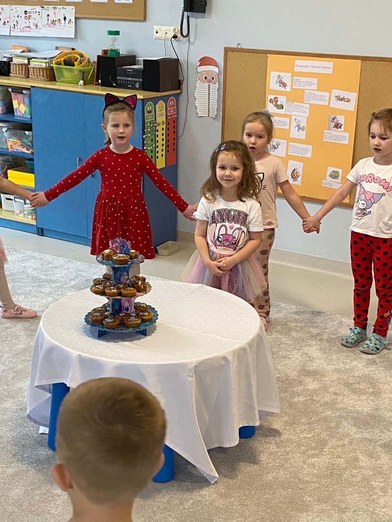 W grudniu swoje piąte urodziny świętowały: Kesja i Kaja. Obu dziewczynkom dzieci pięknie zaśpiewały „Sto lat” i złożyły moc serdecznych życzeń. Na pamiątkę tak ważnego dnia dziewczynki otrzymały albumy urodzinowe składające się z rysunkowych prezentów od kolegów i koleżanek. Jubilatki poczęstowały dzieci domowymi babeczkami z owocami.