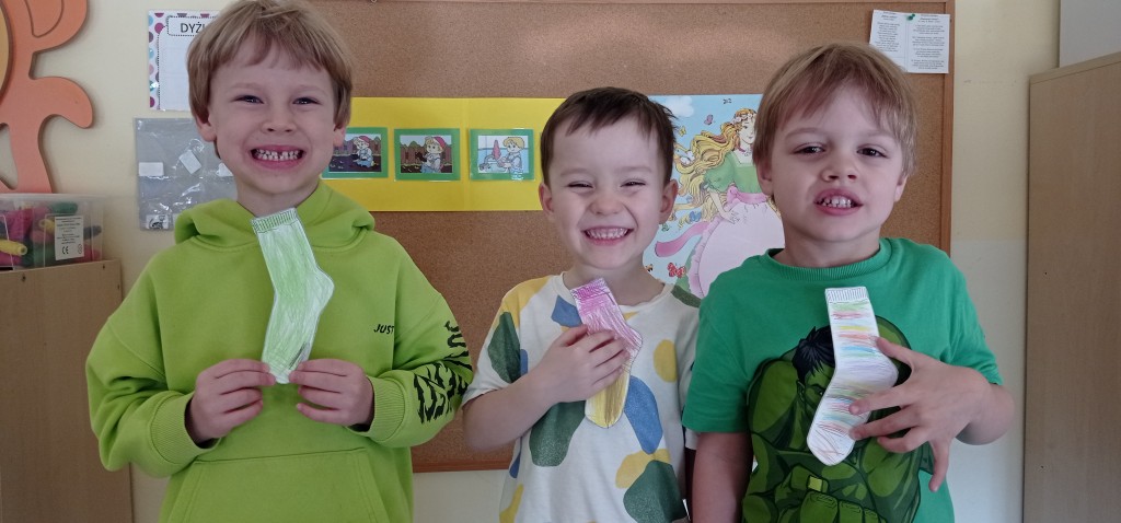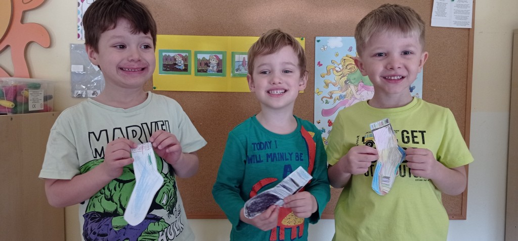 Pierwszy dzień wiosny był w tym roku niezwykle barwny i radosny. 21 marca do przedszkola przyszliśmy ubrani inaczej, niż każdego dnia. Dominującym kolorem stał się bowiem zielony, natomiast nasze stopy zdobiły skarpetki nie do pary, które były symbolem niedopasowania osób dotkniętych Zespołem Downa. Symboliczne kolorowe skarpetki mają na celu uświadamianie, że wśród nas żyją osoby, które na co dzień zmagają się z poczuciem odrębności i niedopasowania.