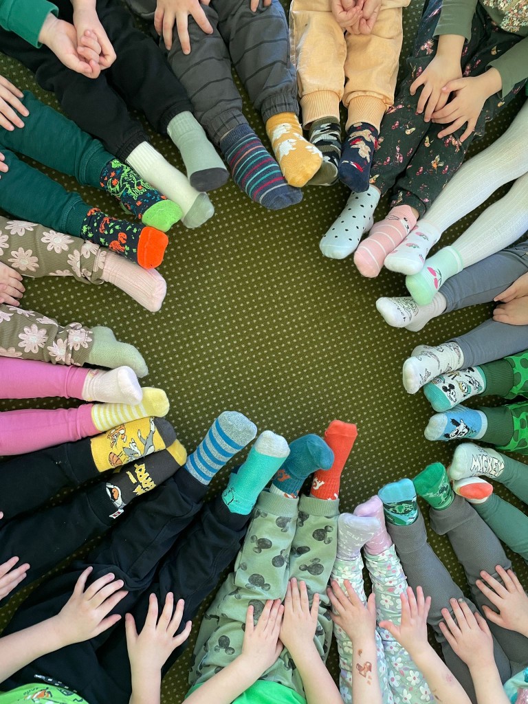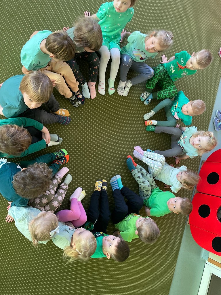 Dnia 21 marca dzieci ubrane na zielono przywitały wiosnę! Tego dnia pamiętaliśmy także o dniu kolorowej skarpetki, czyli o święcie osób z Zespołem Downa.