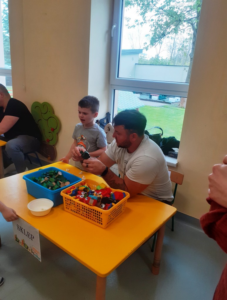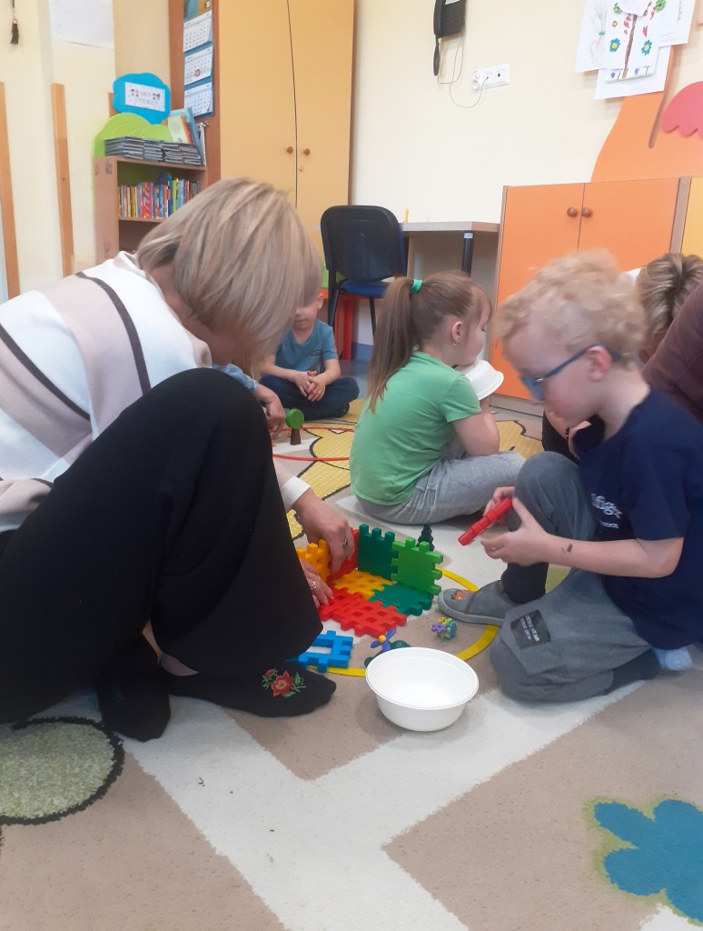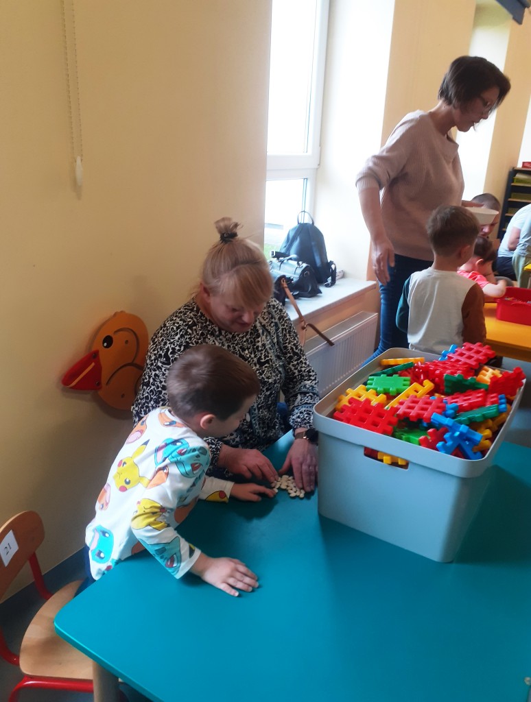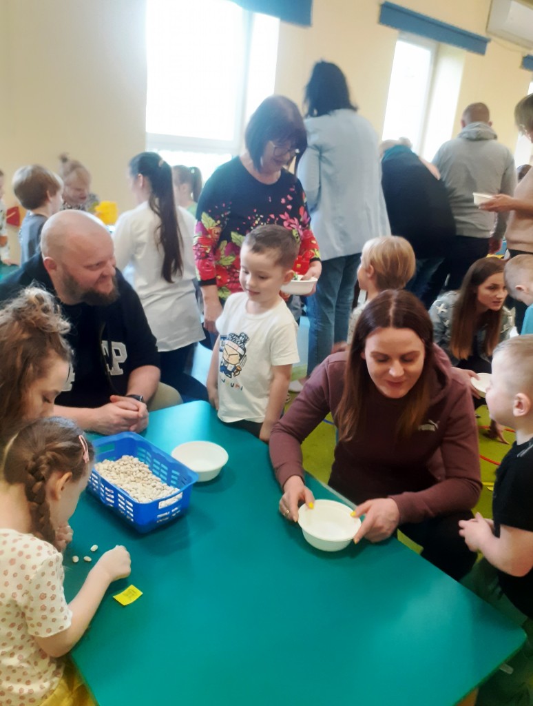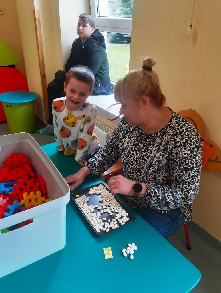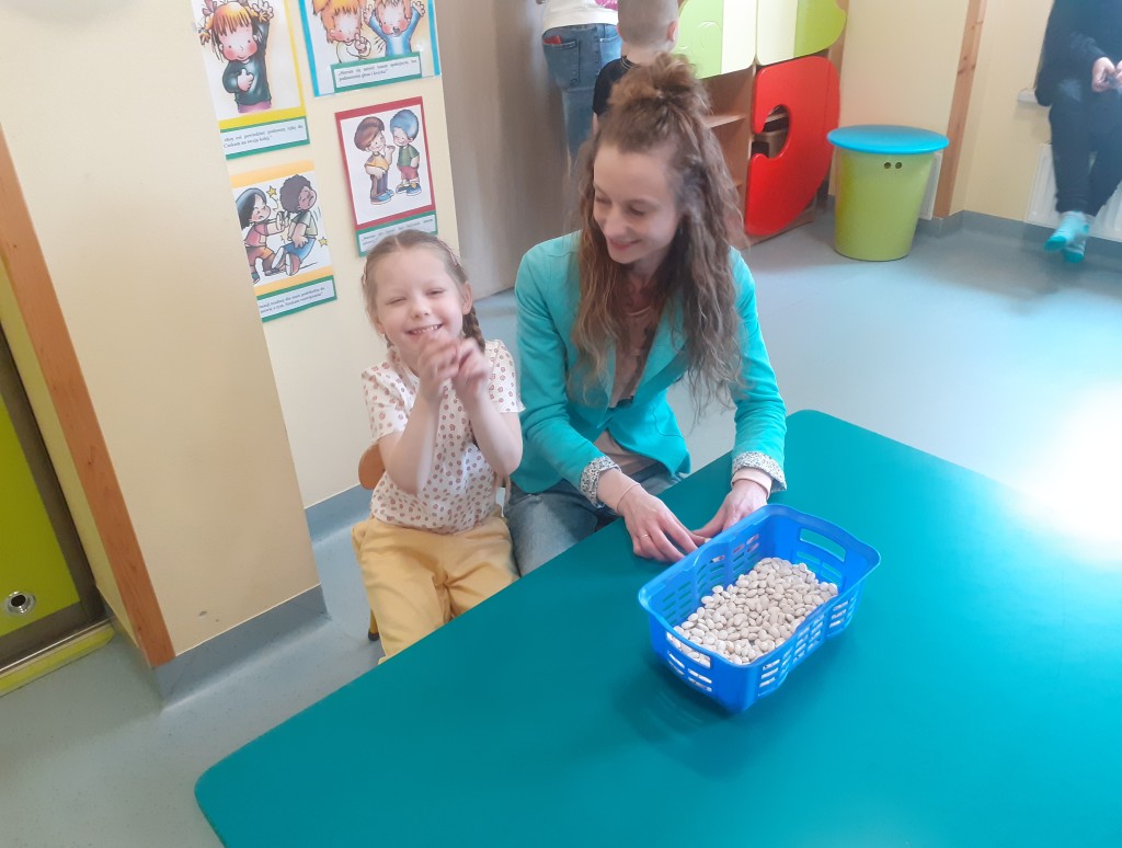 W kwietniu zaprosiliśmy rodziców na zajęcia otwarte z zakresu „Dziecięcej matematyki”, których celem było wdrażanie dzieci do respektowania umów dotyczących wymiany: jeden do jednego, jeden do dwóch oraz jeden do pięciu.