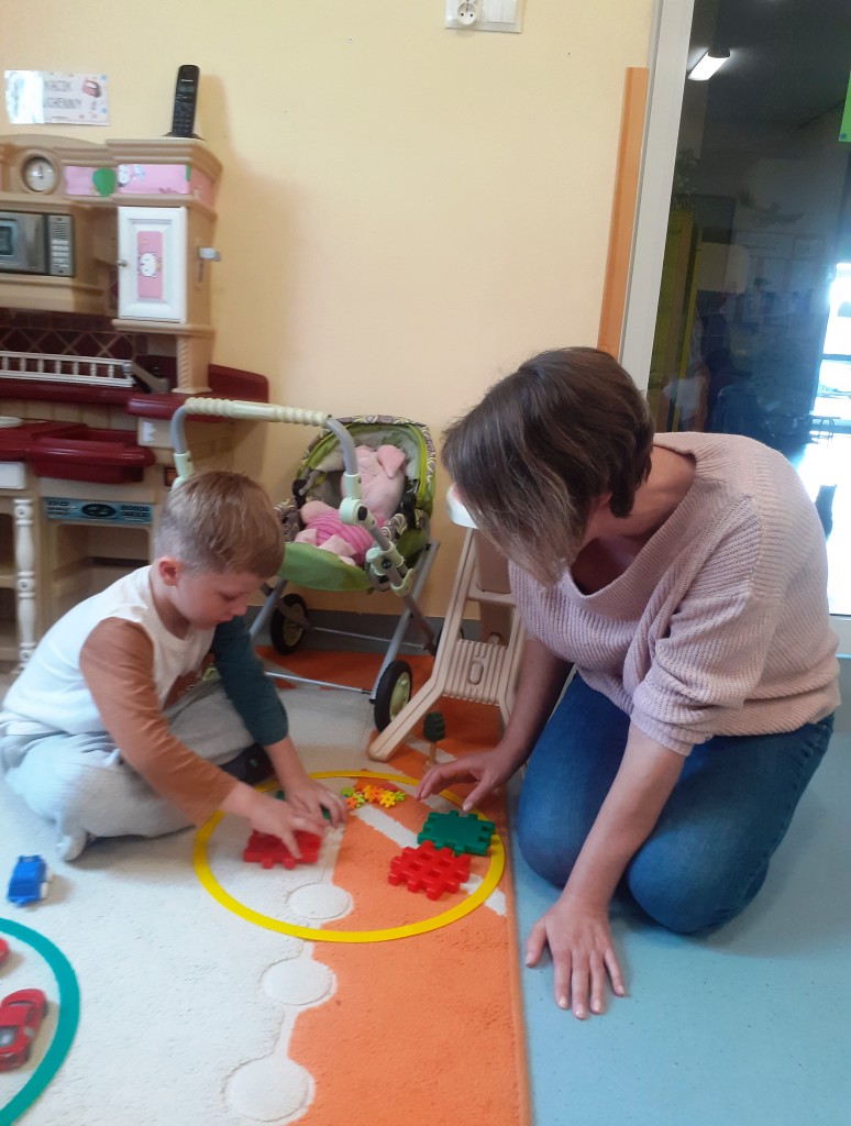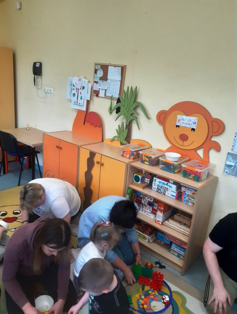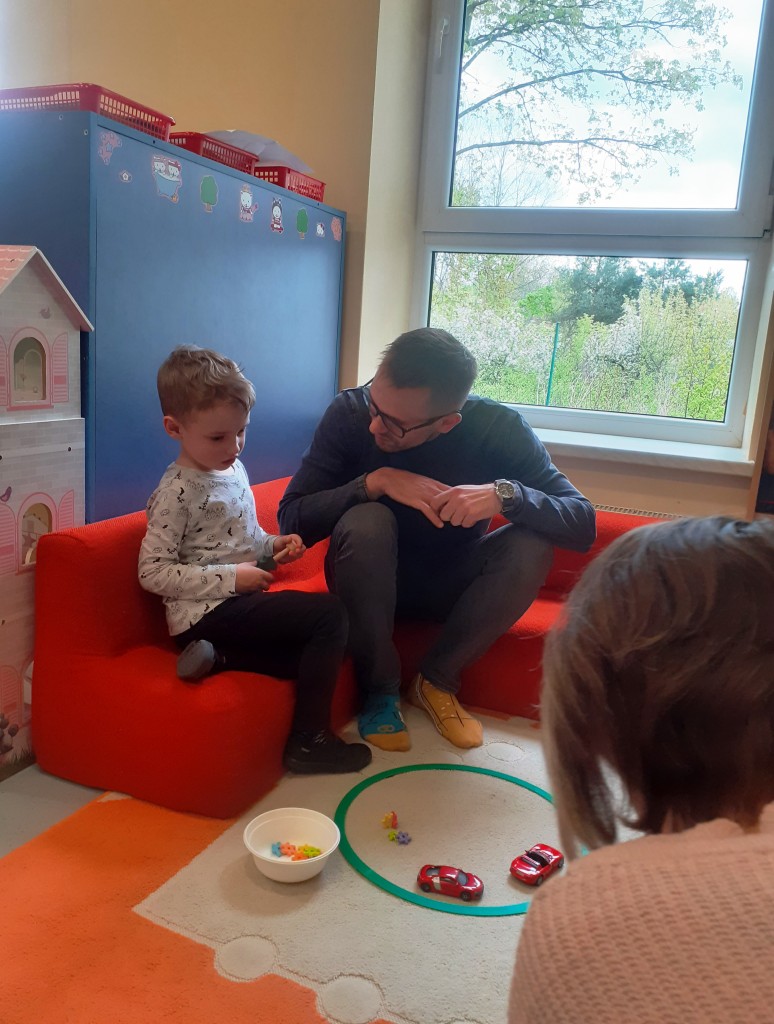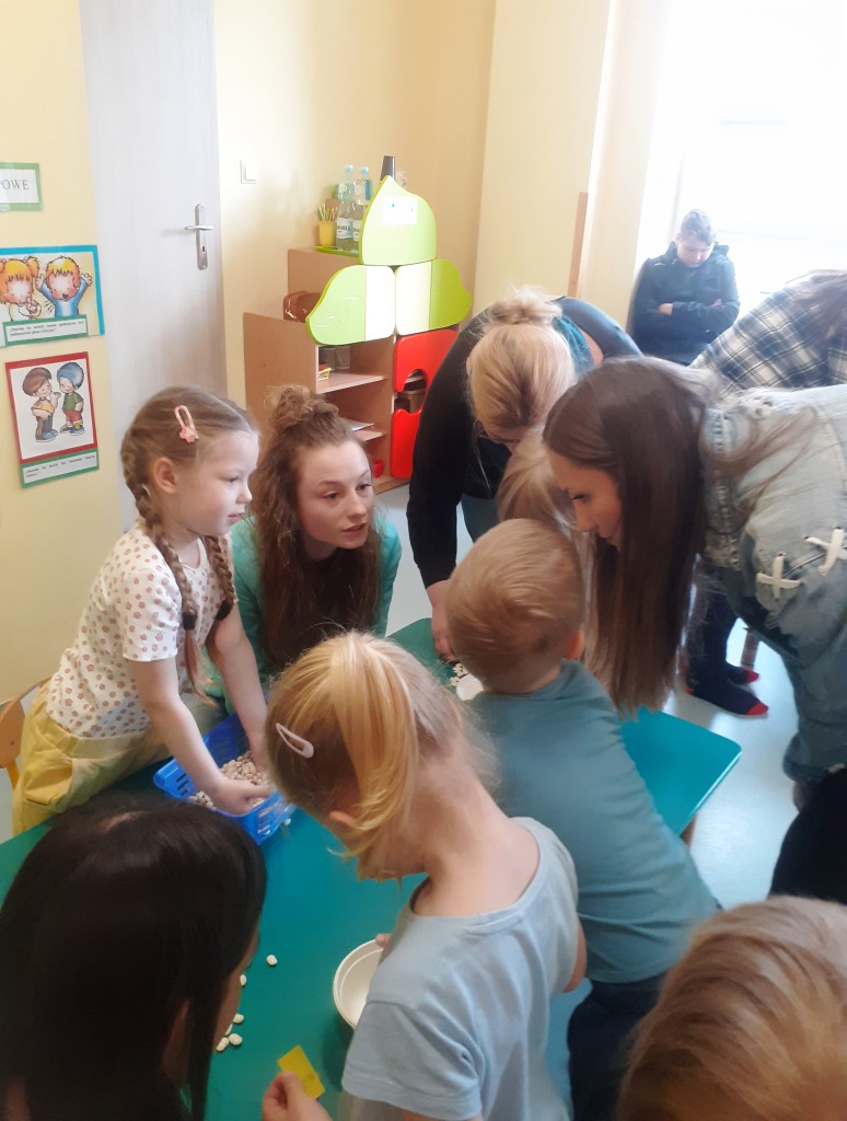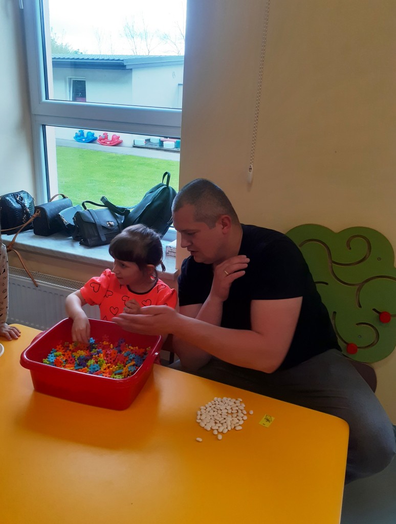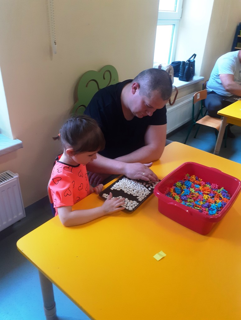 W kwietniu zaprosiliśmy rodziców na zajęcia otwarte z zakresu „Dziecięcej matematyki”, których celem było wdrażanie dzieci do respektowania umów dotyczących wymiany: jeden do jednego, jeden do dwóch oraz jeden do pięciu.