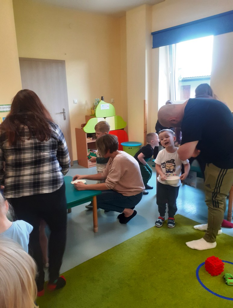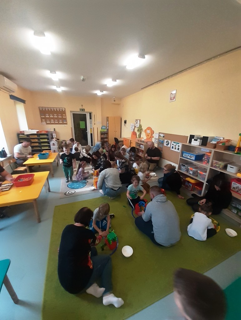 Rodzice mieli możliwość obserwowania swoich dzieci podczas zajęć, ale także aktywnego w nich uczestniczenia. 4-latki chętnie i aktywnie uczestniczyły w proponowanych formach działalności, dając wyraz swojemu zainteresowaniu i zaangażowaniu.