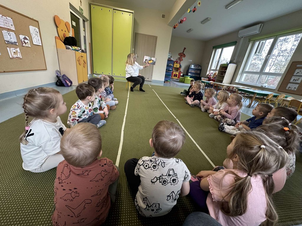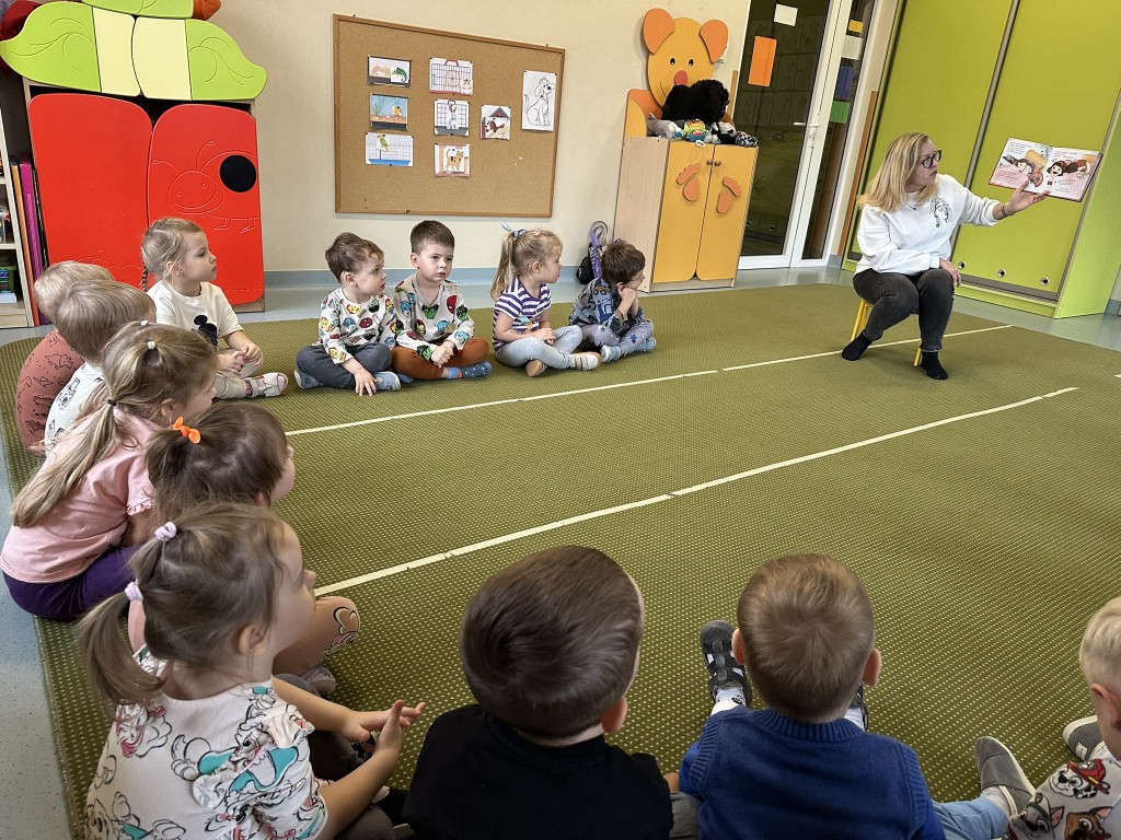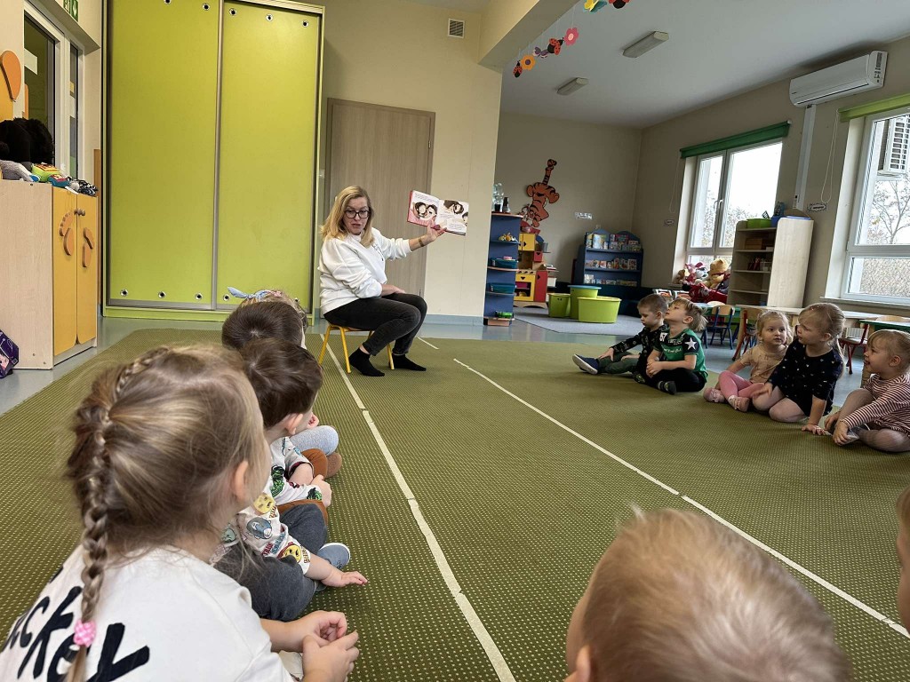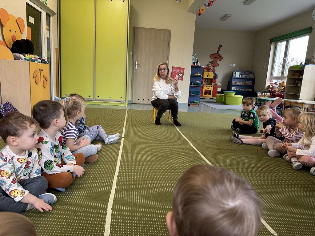 14 listopada ponownie odwiedziła nas Pani Bibliotekarka z Biblioteki Pedagogicznej, aby spędzić z nami czas na wspólnym czytaniu książeczek. Tym razem posłuchaliśmy opowiadania B. Supeł pt. "Jadzia Pętelka mówi czułe słówka". Dzięki lekturze utrwaliliśmy sobie miłe słowa, którymi możemy obdarzać naszych najbliższych.