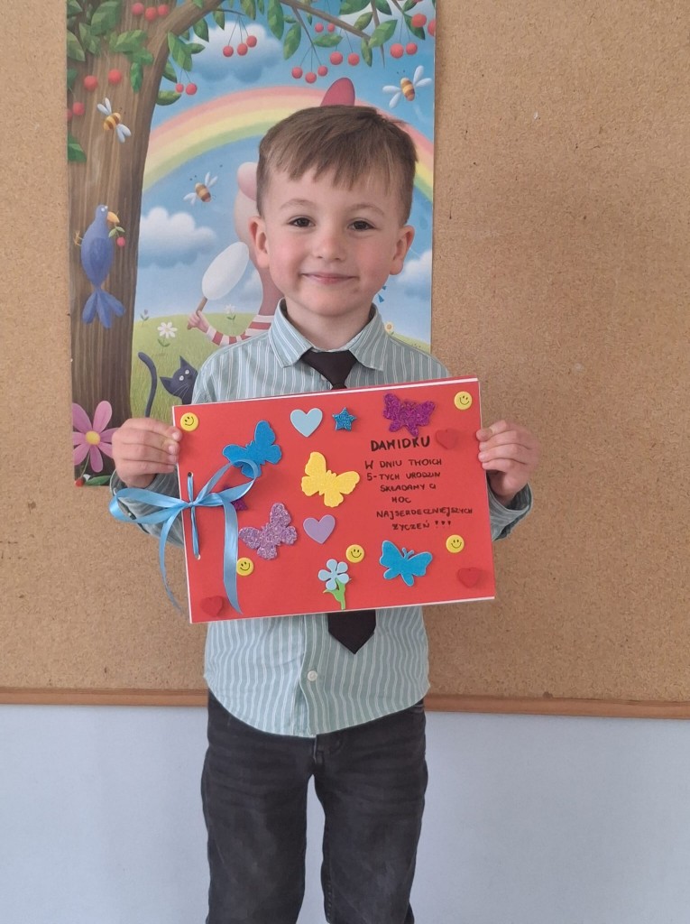 W maju swoje 5-te urodziny świętował Dawid. Złożyliśmy Dawidowi mnóstwo życzeń, zaśpiewaliśmy mu “Sto lat” oraz podarowaliśmy mu własnoręcznie wykonany album. Jeszcze raz życzymy Dawidowi dużo zdrówka i uśmiechu na co dzień