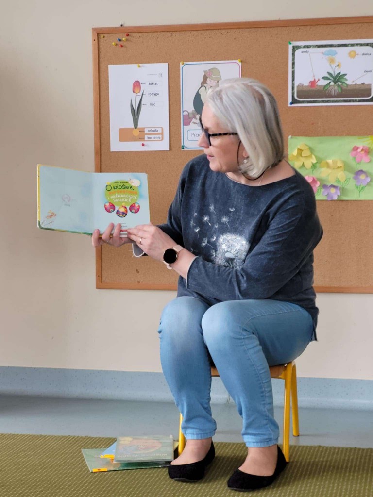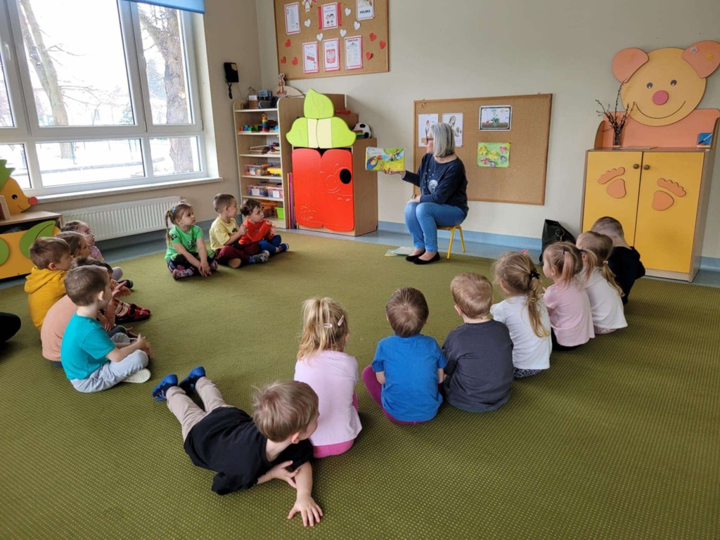 Kolejny już raz mieliśmy okazję spotkać się z Panią, która pracuje w Bibliotece Pedagogicznej. Tym razem mogliśmy posłuchać opowiadań: „O wiośnie, kurczętach i wielkanocnych świętach” oraz „Marysia i wielkanocne jajka”, które nawiązywały do tradycji związanych ze Świętami Wielkanocnymi.
