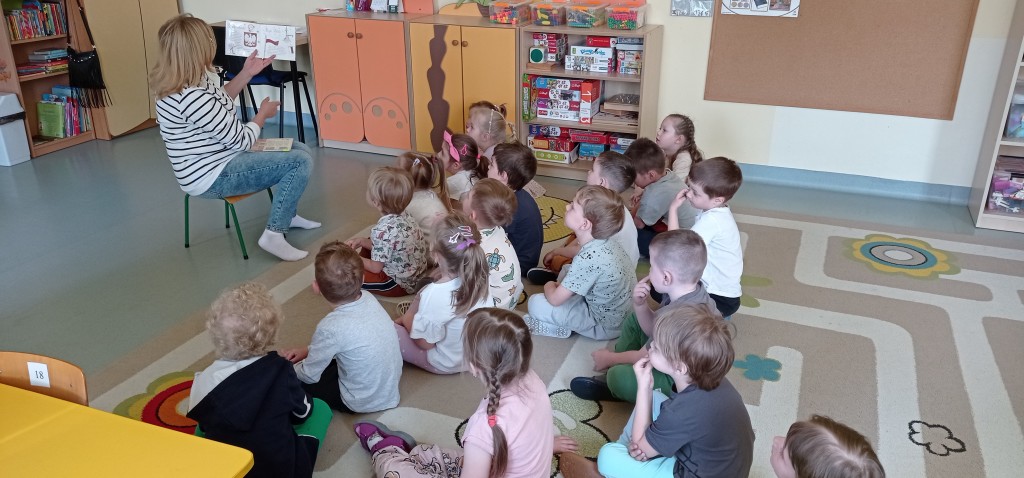 Z końcem kwietnia w ramach cyklu spotkań „Minutki z książką” odwiedził nas pracownik Biblioteki Pedagogicznej. W związku ze zbliżającymi się świętami państwowymi spotkanie nawiązywało do tematyki tygodnia związanej z naszym krajem.