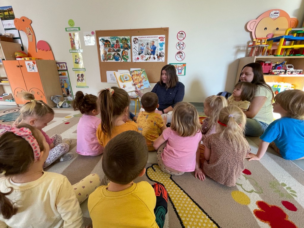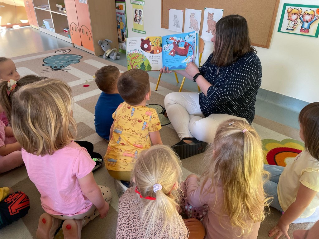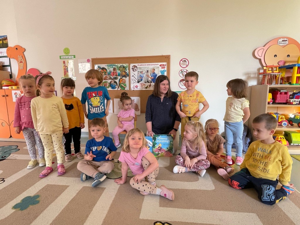W lutym kolejny raz odwiedziła nas Pani pracująca w Bibliotece Pedagogicznej. Z zaciekawieniem wysłuchaliśmy opowiadania pt. „Przyjaciele tak się nie bawią, Misiu”, gdzie Miś i Wiewiórka pokazują i radzą, jak wyrażać swoje uczucia, żeby lepiej się porozumieć i lepiej się poczuć. Drugie opowiadanie pt. „Odwagi, pszczółko” było o tytułowym owadzie, który wszystkiego się bał, ale dzięki przyjaciołom udało mu się przezwyciężyć obawy i przekonać się, jaki jest dzielny.
