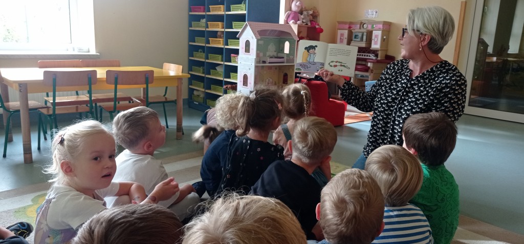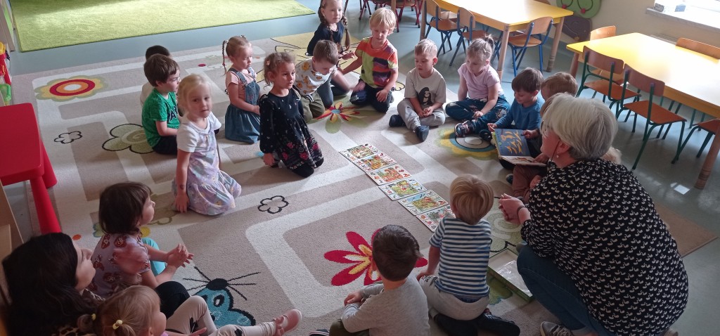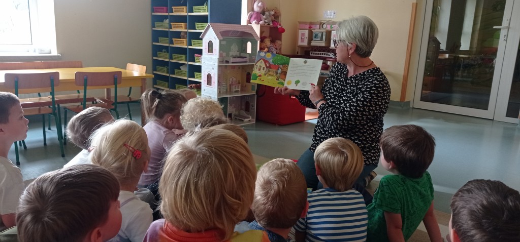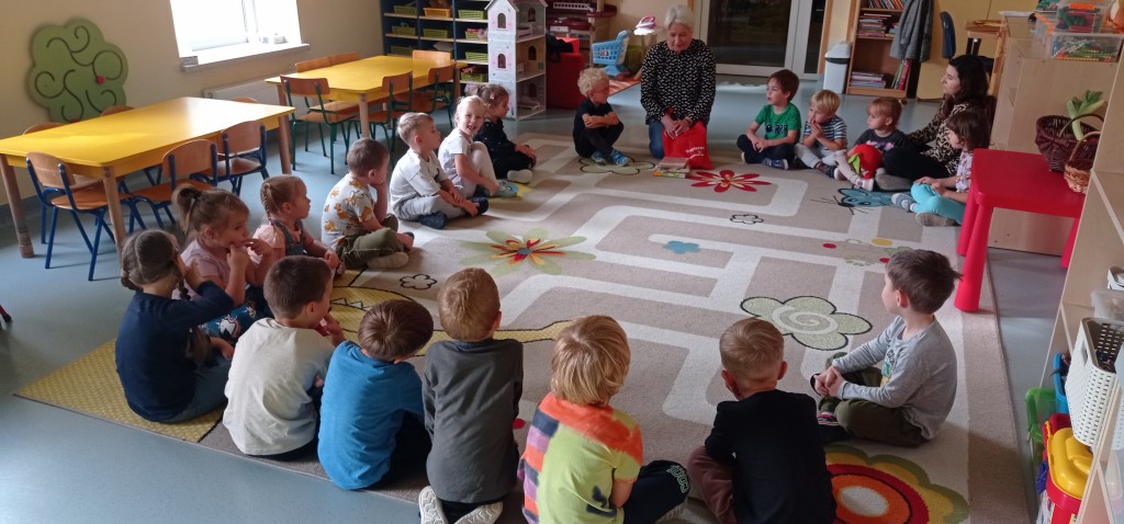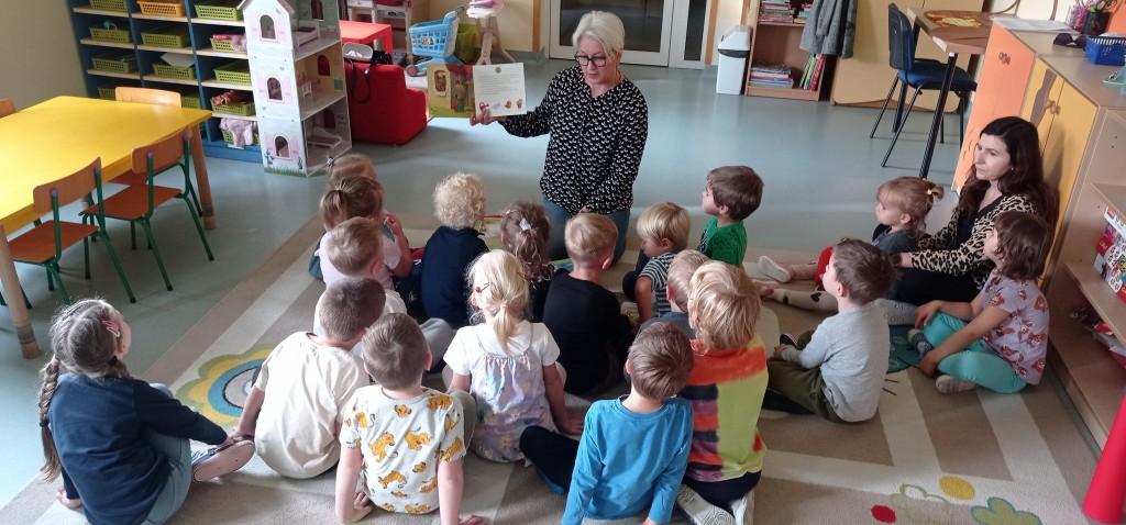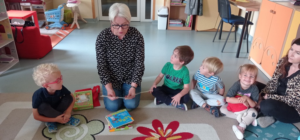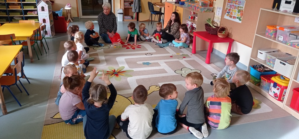 W trwającym roku szkolnym podjęliśmy kontynuację współpracy z Biblioteką Pedagogiczną. W związku z tym dnia 12 października odbyło się pierwsze spotkanie z cyklu „Minutki z książką”. W czasie zajęć na podstawie książek o naszych rówieśnikach – Marysi i Lenie, utrwalaliśmy wiedzę na temat jesiennych warzyw i owoców oraz korzyści płynących z ich spożywania. Mieliśmy także możliwość wziąć udział w grze dydaktycznej nawiązującej to tej tematyki.