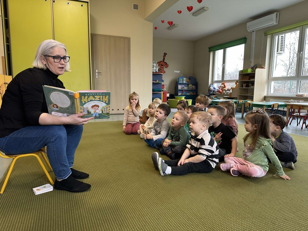 23 stycznia odwiedziła naszą grupę Pani Bibliotekarka z Biblioteki Pedagogicznej. Tym razem mieliśmy okazję posłuchać opowiadania o chłopcu Kaziu, który uczył się czekać. Wiemy, że to bardzo ważna umiejętność, którą także i my przyswajamy z każdym dniem.