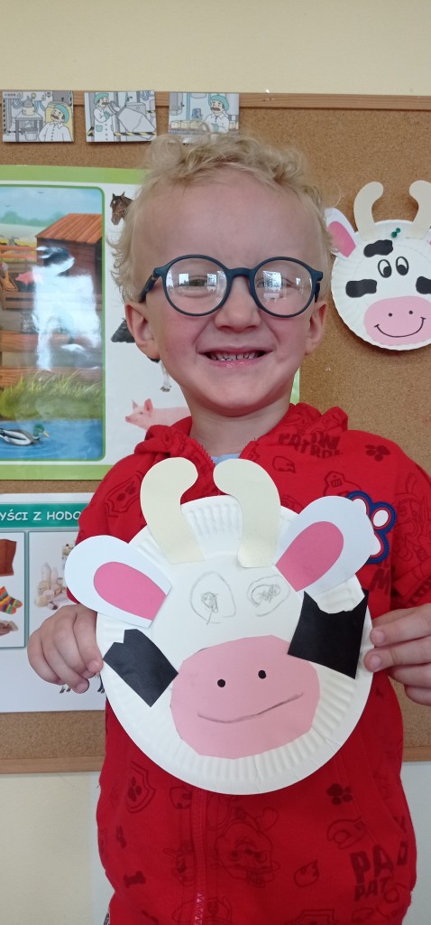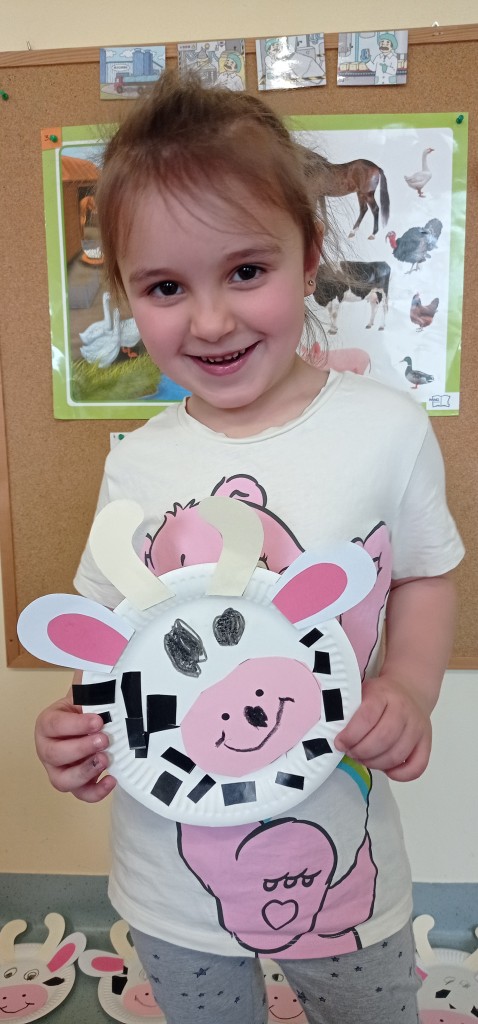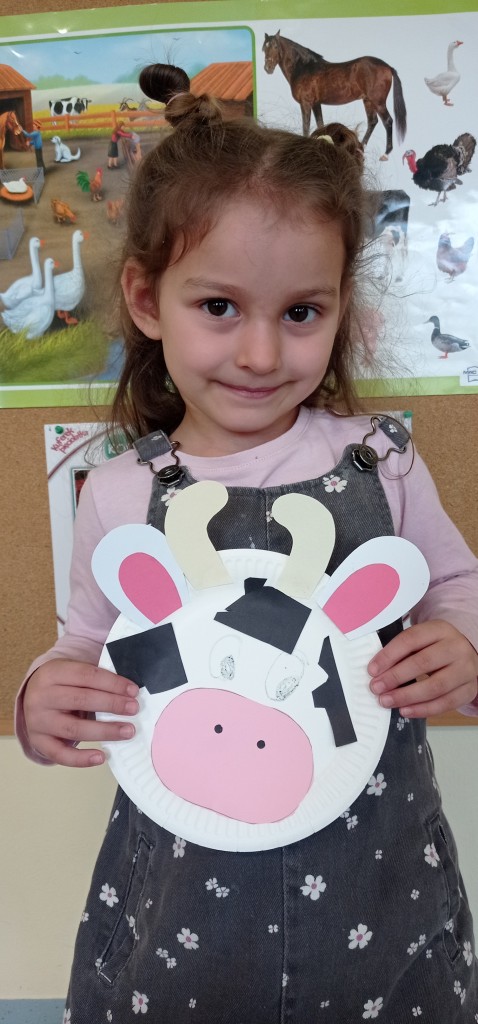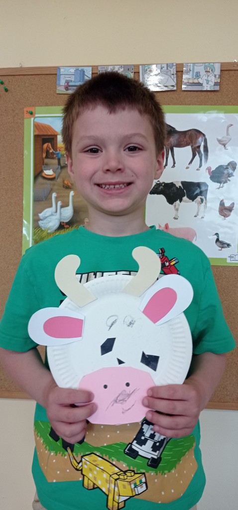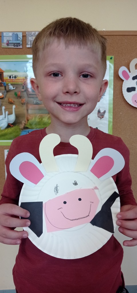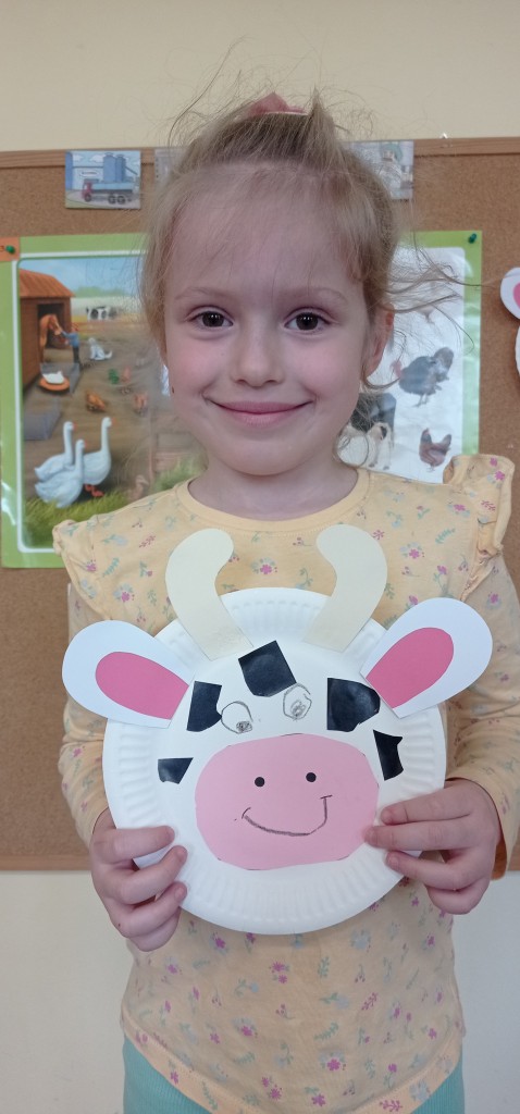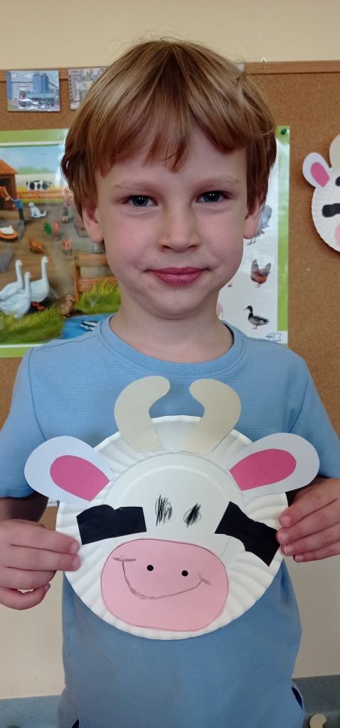 Kury, krowy, konie, owce i inne zwierzęta z wiejskiego podwórka były bohaterami minionego tygodnia. Poznawaliśmy i utrwalaliśmy między innymi nazwy zwierząt, ich głosy oraz upodobania żywieniowe. Mieliśmy okazję uczestniczyć w degusyacji nabiału. Przy okazji dowiedzieliśmy się, że jest on bardzo korzystny dla naszego zdrowia. Wykonaliśmy także tematyczną pracę plastyczną.