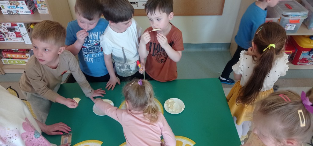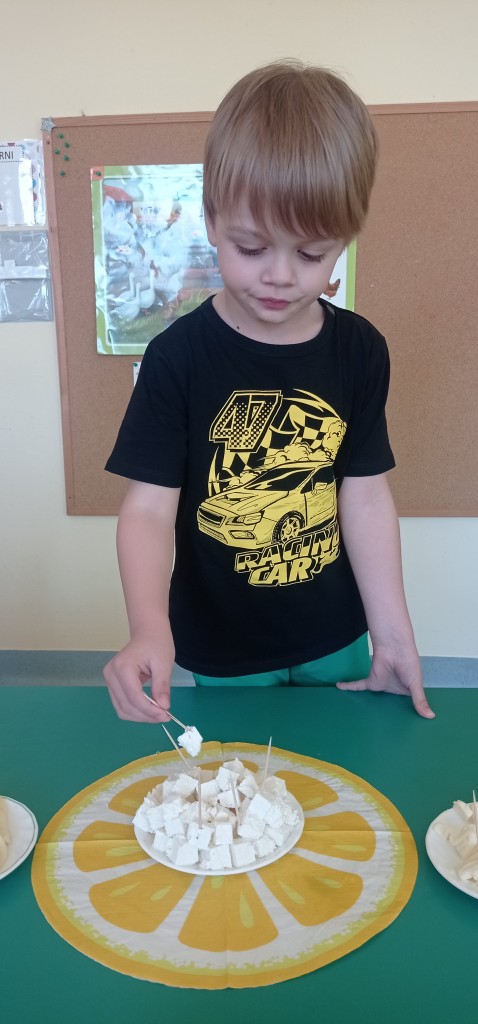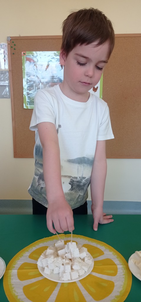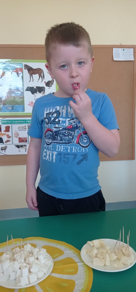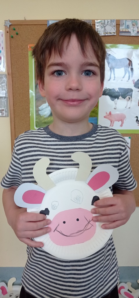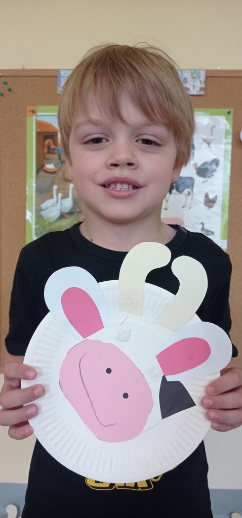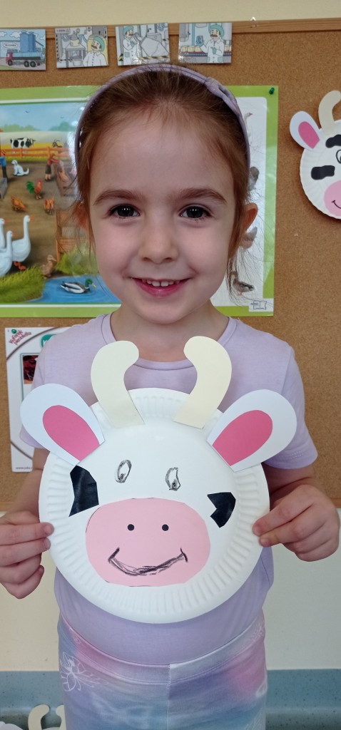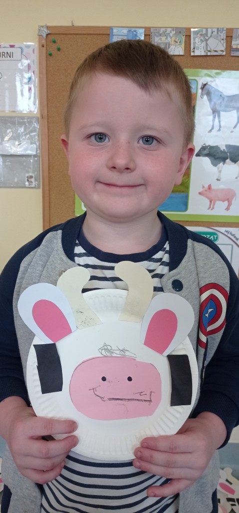 Kury, krowy, konie, owce i inne zwierzęta z wiejskiego podwórka były bohaterami minionego tygodnia. Poznawaliśmy i utrwalaliśmy między innymi nazwy zwierząt, ich głosy oraz upodobania żywieniowe. Mieliśmy okazję uczestniczyć w degusyacji nabiału. Przy okazji dowiedzieliśmy się, że jest on bardzo korzystny dla naszego zdrowia. Wykonaliśmy także tematyczną pracę plastyczną.