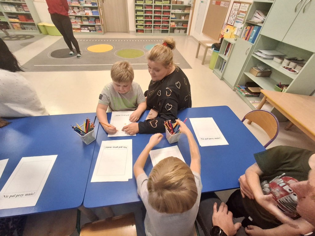 „Nie pal przy mnie” to temat zajęć z zakresu edukacji zdrowotnej połączonych z tworzeniem znaku zakazu palenia w ramach zajęć otwartych dla rodziców, które odbyły się 19 listopada.