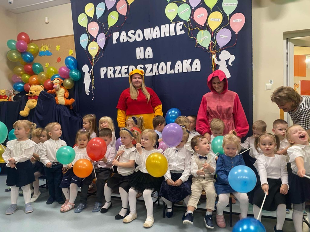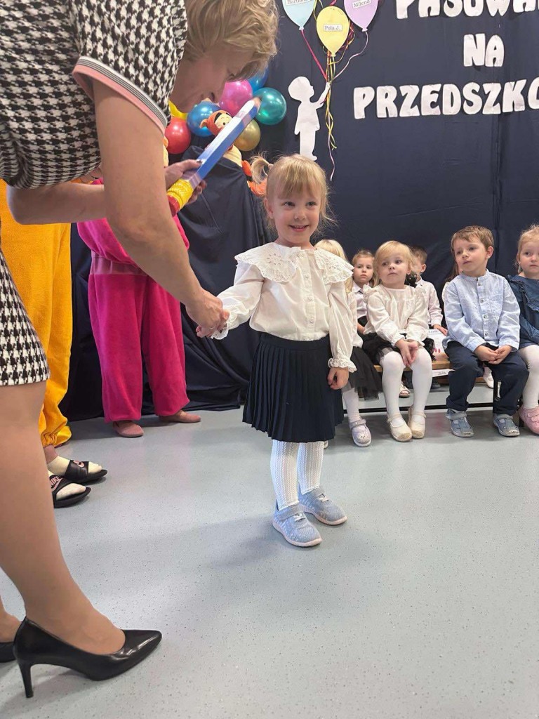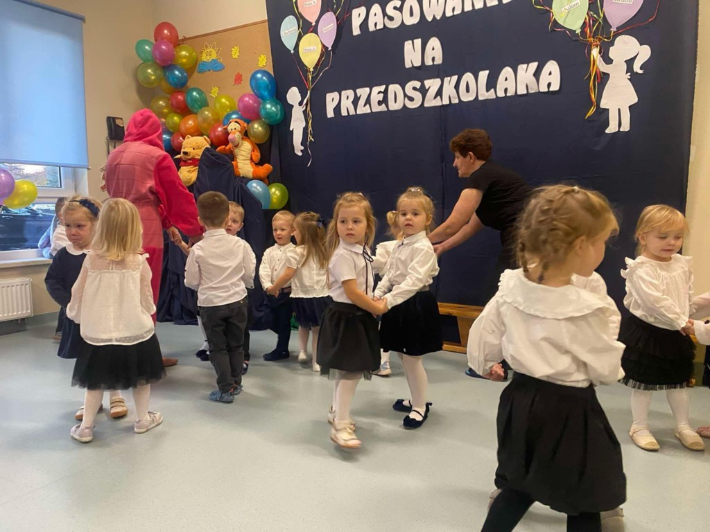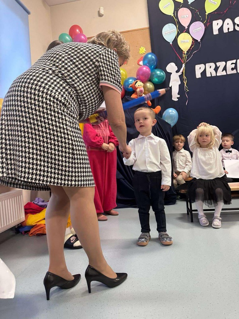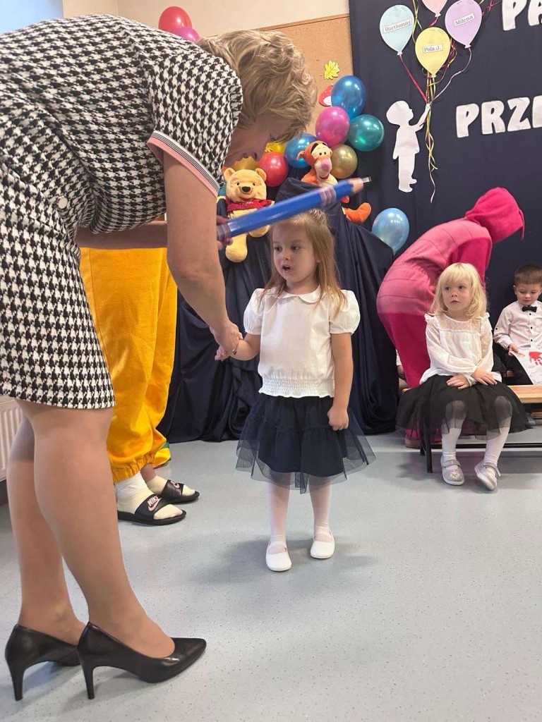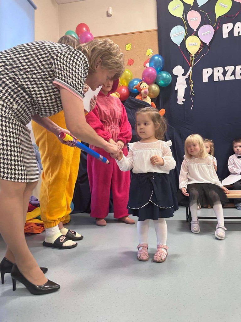 Pasowanie na Przedszkolaka to wyjątkowa uroczystość, która odbyła się w naszej grupie 6 listopada. Zaprosiliśmy na nią naszą Panią Dyrektor oraz kochanych Rodziców. Przedstawiając krótką część artystyczną, pokazaliśmy, że potrafimy mówić wierszyki, śpiewać piosenki, a nawet tańczyć! Dla większości z nas, był to pierwszy występ przed tak licznie zgromadzoną publicznością. Po części artystycznej nastąpił uroczysty akt pasowania - dotknięcie ramienia każdego z nas dużym ołówkiem przez Panią Dyrektor. Zwieńczeniem tego spotkania był słodki poczęstunek.