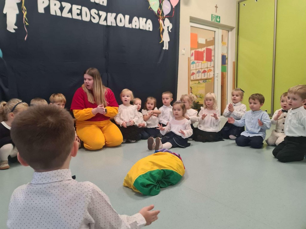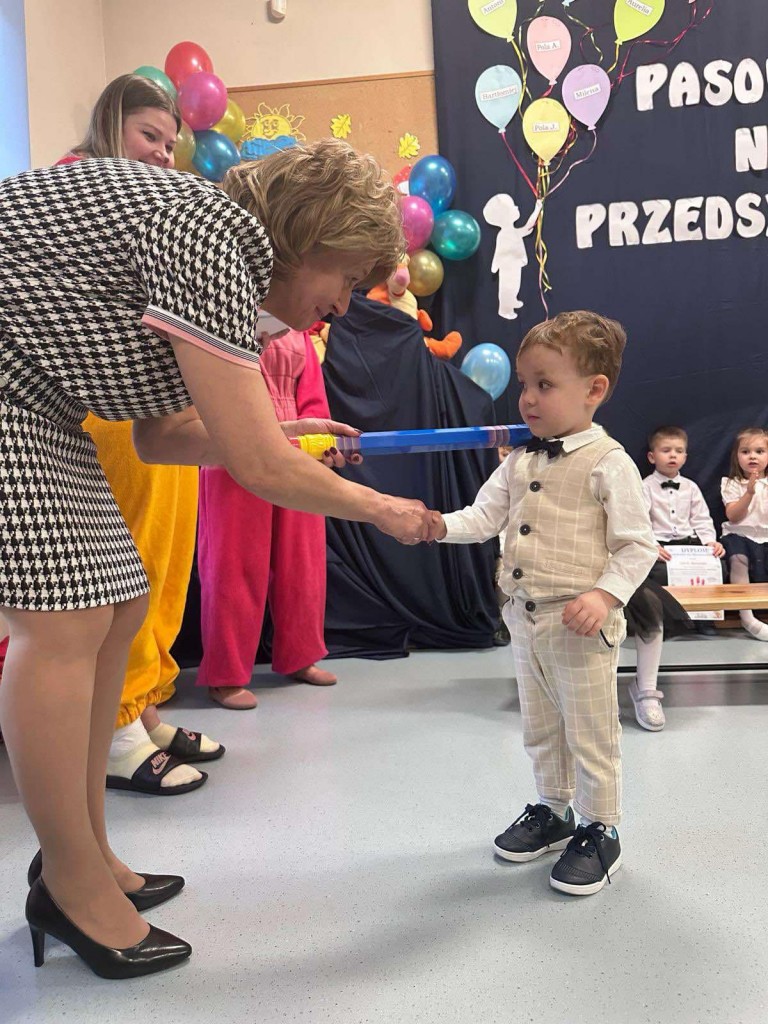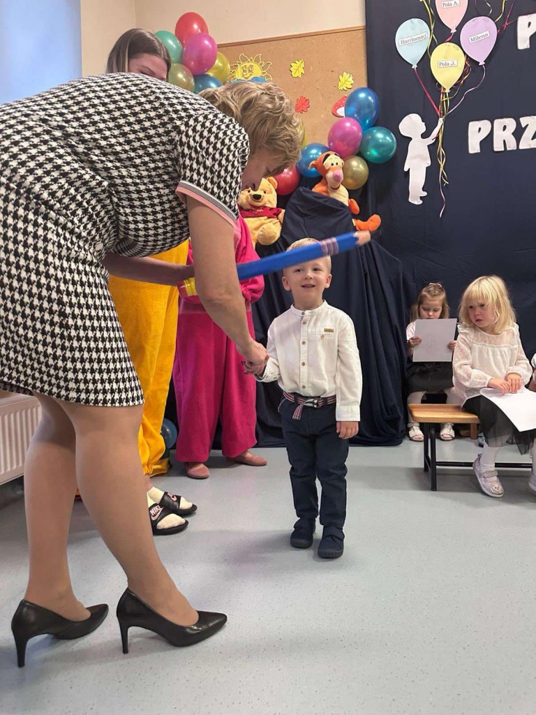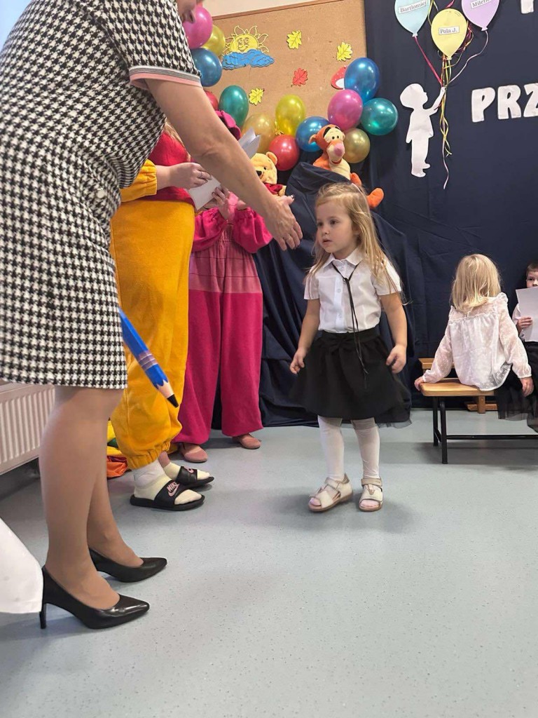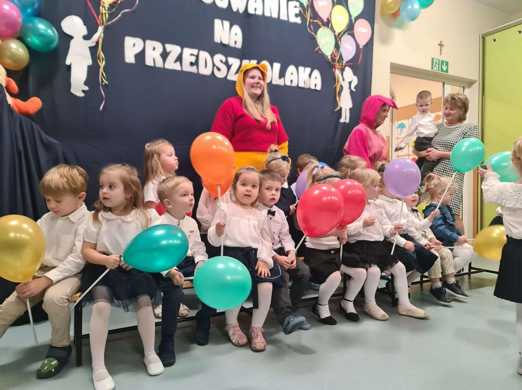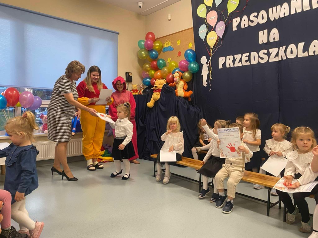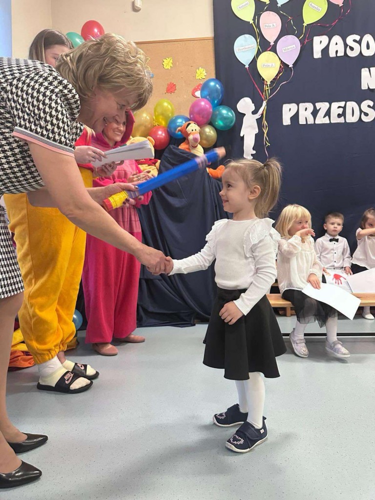 Pasowanie na Przedszkolaka to wyjątkowa uroczystość, która odbyła się w naszej grupie 6 listopada. Zaprosiliśmy na nią naszą Panią Dyrektor oraz kochanych Rodziców. Przedstawiając krótką część artystyczną, pokazaliśmy, że potrafimy mówić wierszyki, śpiewać piosenki, a nawet tańczyć! Dla większości z nas, był to pierwszy występ przed tak licznie zgromadzoną publicznością. Po części artystycznej nastąpił uroczysty akt pasowania - dotknięcie ramienia każdego z nas dużym ołówkiem przez Panią Dyrektor. Zwieńczeniem tego spotkania był słodki poczęstunek.