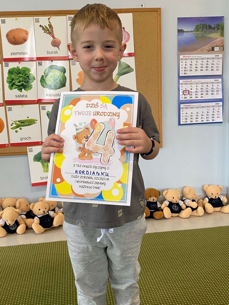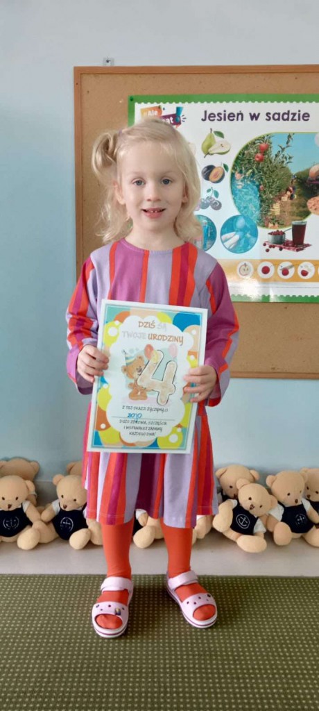 W październiku swoje czwarte urodziny świętowali: Nela, Zoja, Lidzia i Kordian. W tak ważnym dla siebie dniu przyjmowali życzenia i słuchali „Sto lat” śpiewanego przez wszystkie koleżanki i kolegów z grupy. Naszym październikowym Jubilatom składamy serdeczne życzenia- zdrówka, spełnienia marzeń i radości każdego dnia :)