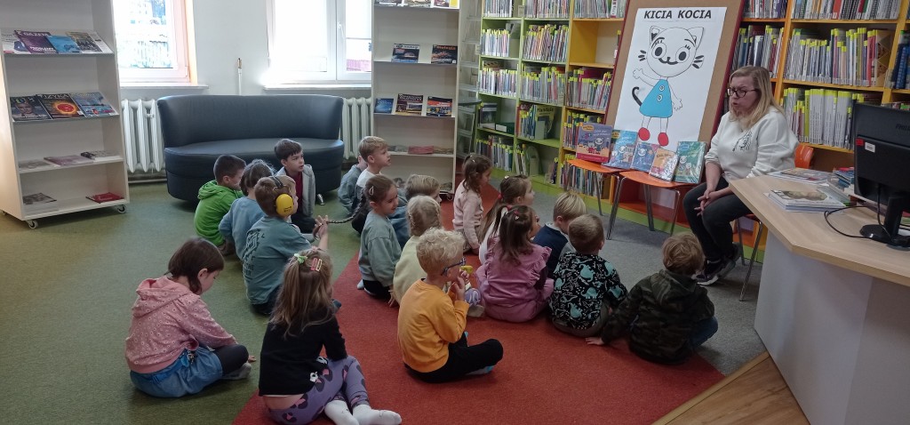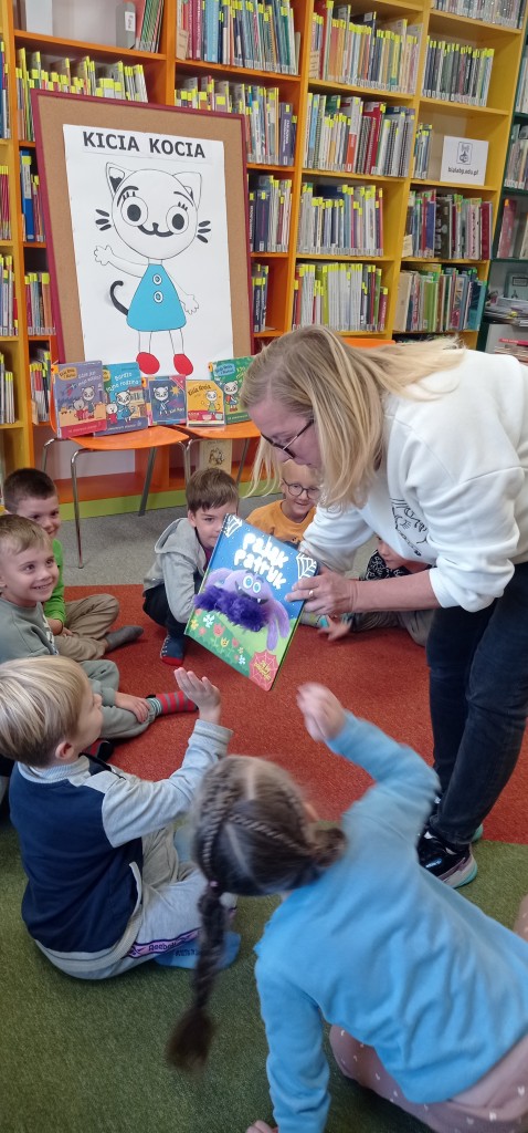 W październiku po raz pierwszy z całą grupą odwiedziliśmy pobliską Bibliotekę Pedagogiczną. Naszą inspiracją do spotkania była książkowa Kicia Kocia i jej wizyta w bibliotece.